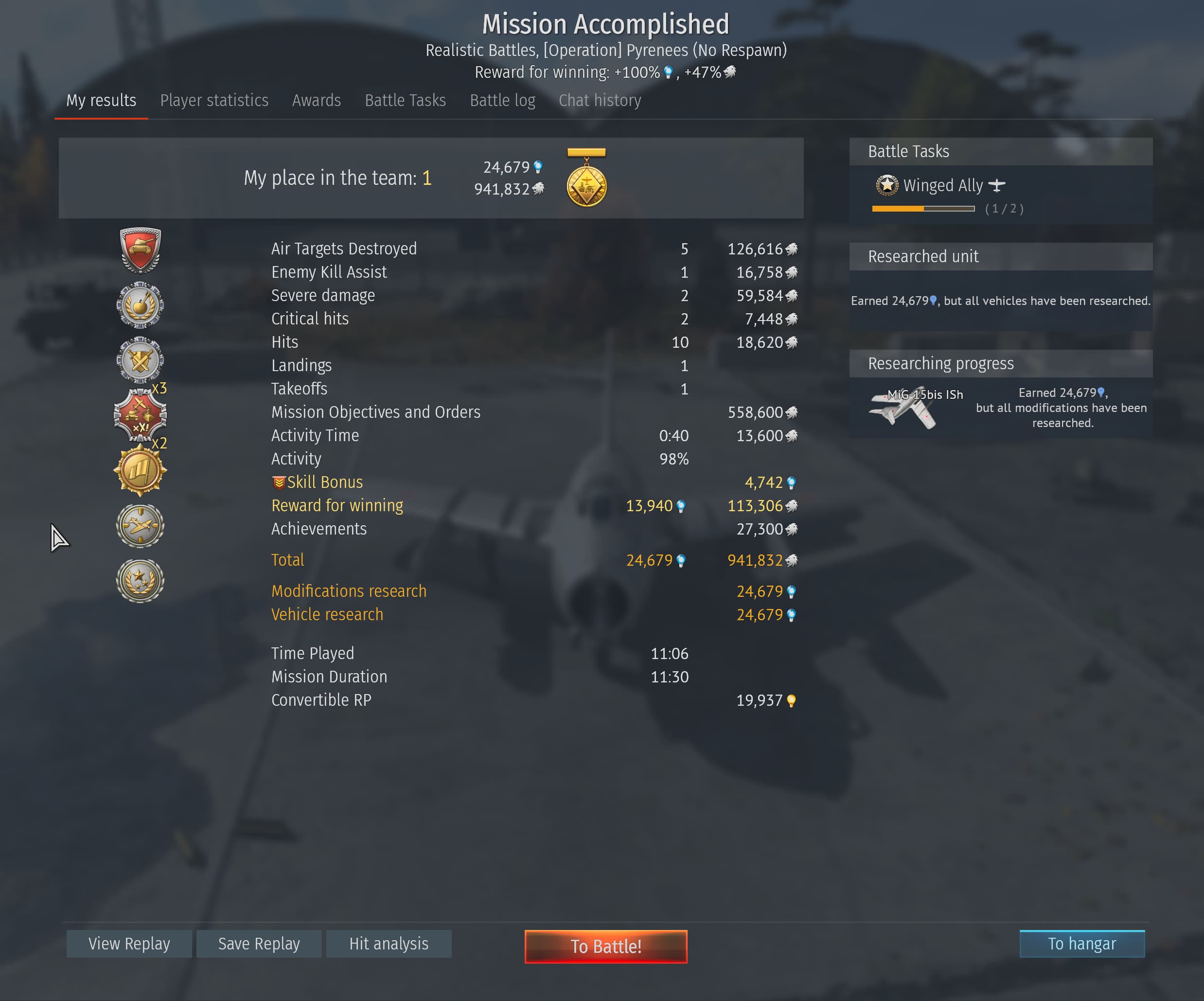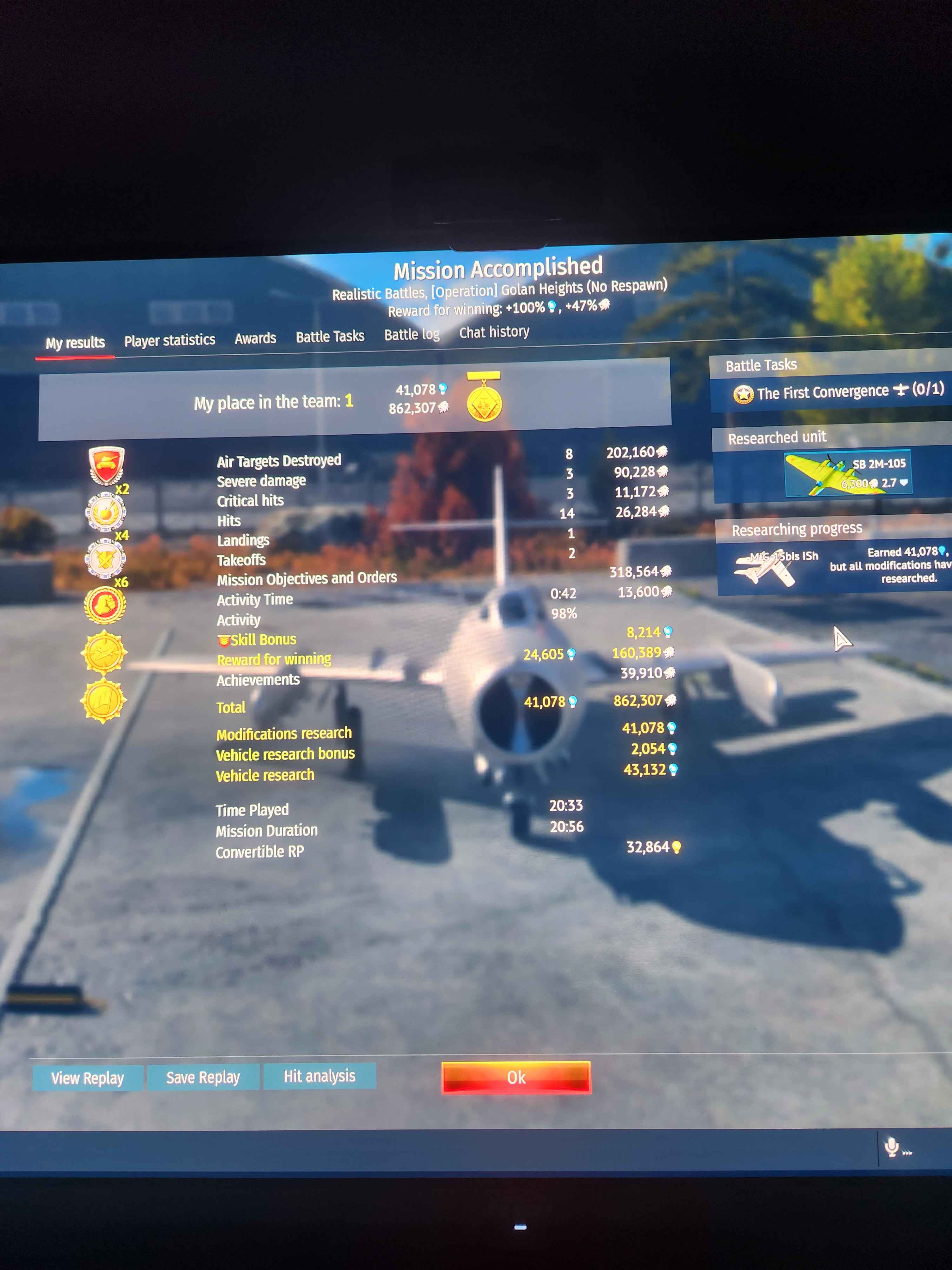 Works everytime LOL 1.38 Million Silver Lions! I also already have every single plane researched in Russian Aviation. MiG-15bis ISh for the win! Slap on a fat booster & apply that AAA order and farm in Air RB.