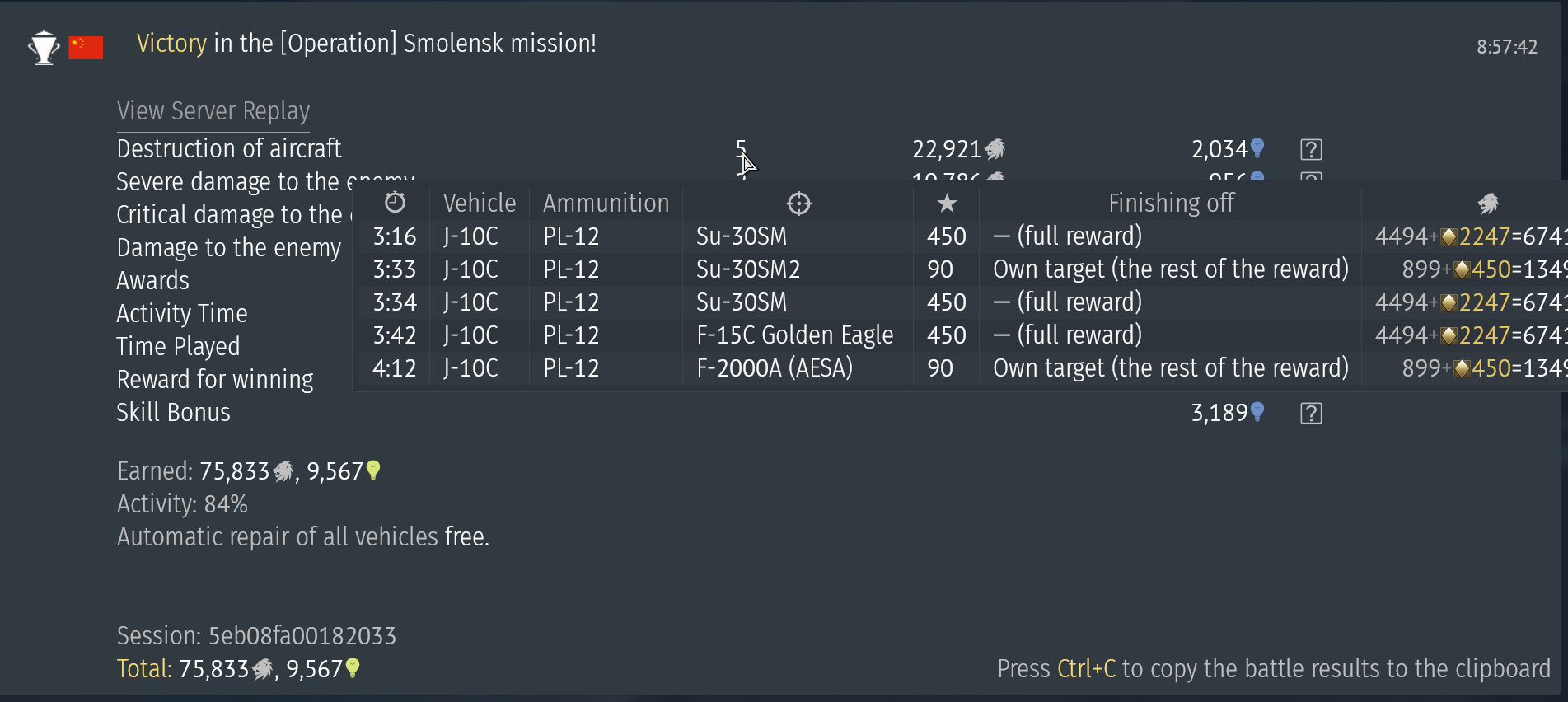 Unfortunately the Italian and German AESA Eurofighters cannot be set apart from their non-AESA versions, as both show up the same way in the kill feed.