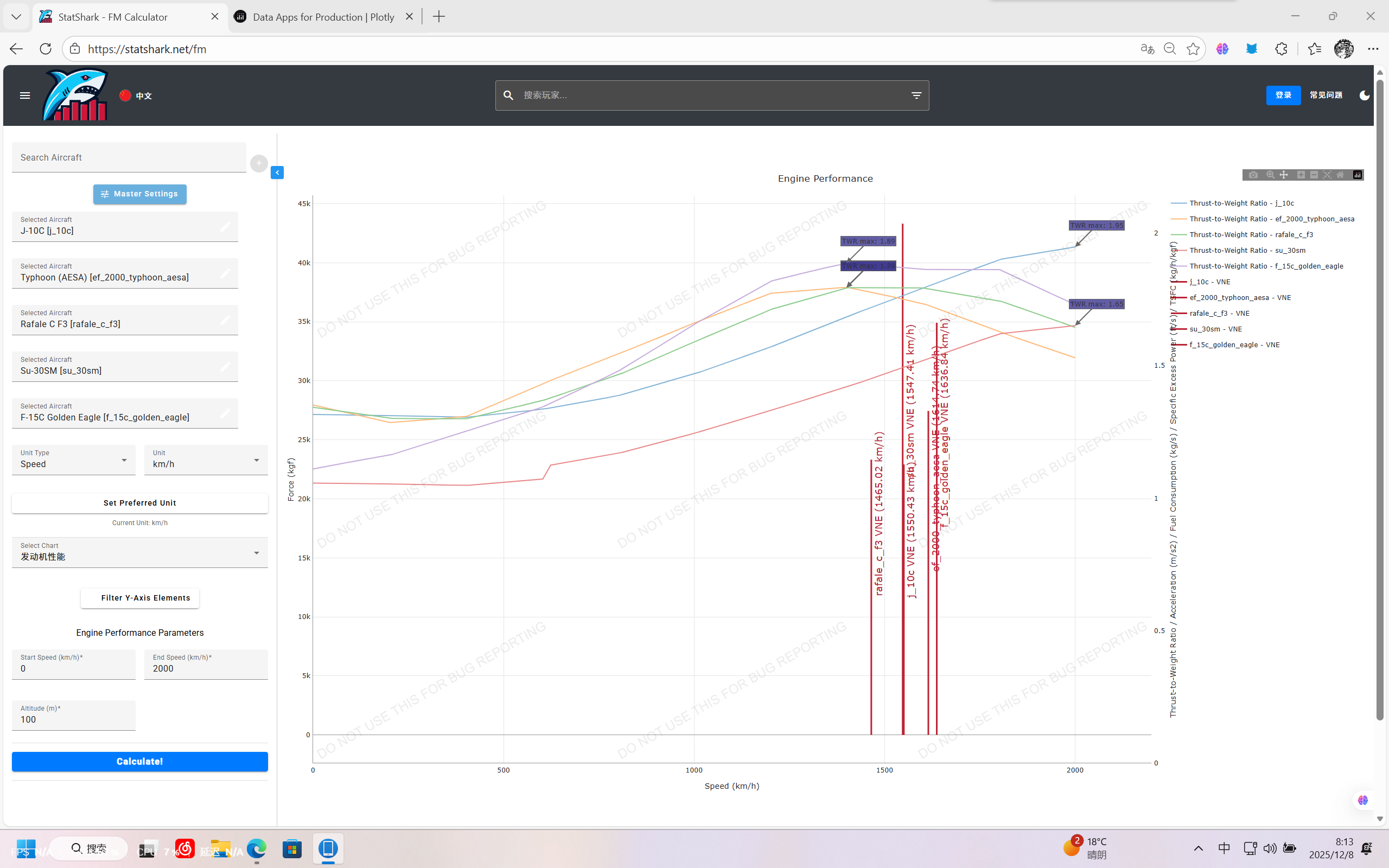 j10c的功重比在500-1500kmh速度区间也落后于其他飞机