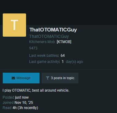 I will be a staunch defender of the OTOMATIC, the thing is just so good, not to make fun of the guy who made the thread but he is here complaining after so few games in it. Its like the other dude who made a thread complaining after 8 games. They just need to play the vehicle more to understand its baller and not underpowered in the slightest.