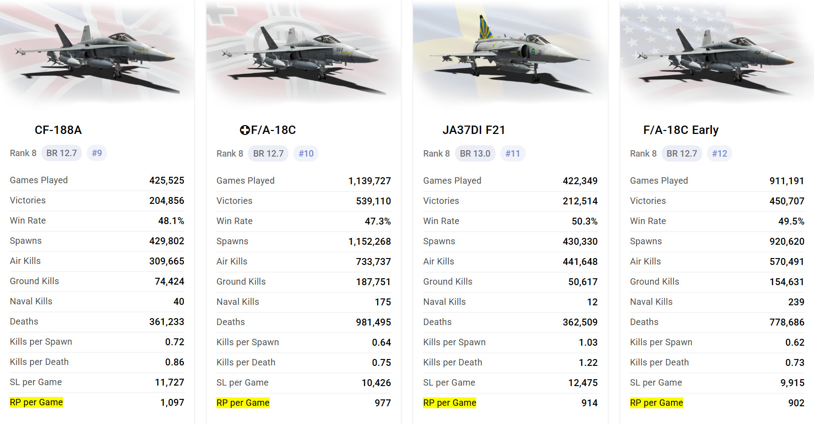 - J-11A: to the 13.7 - massively overperforms (1.54 K/D)