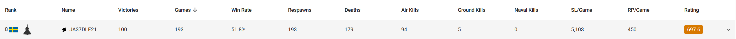 - JA37DI/F21: overperforms (1.22 K/D)
