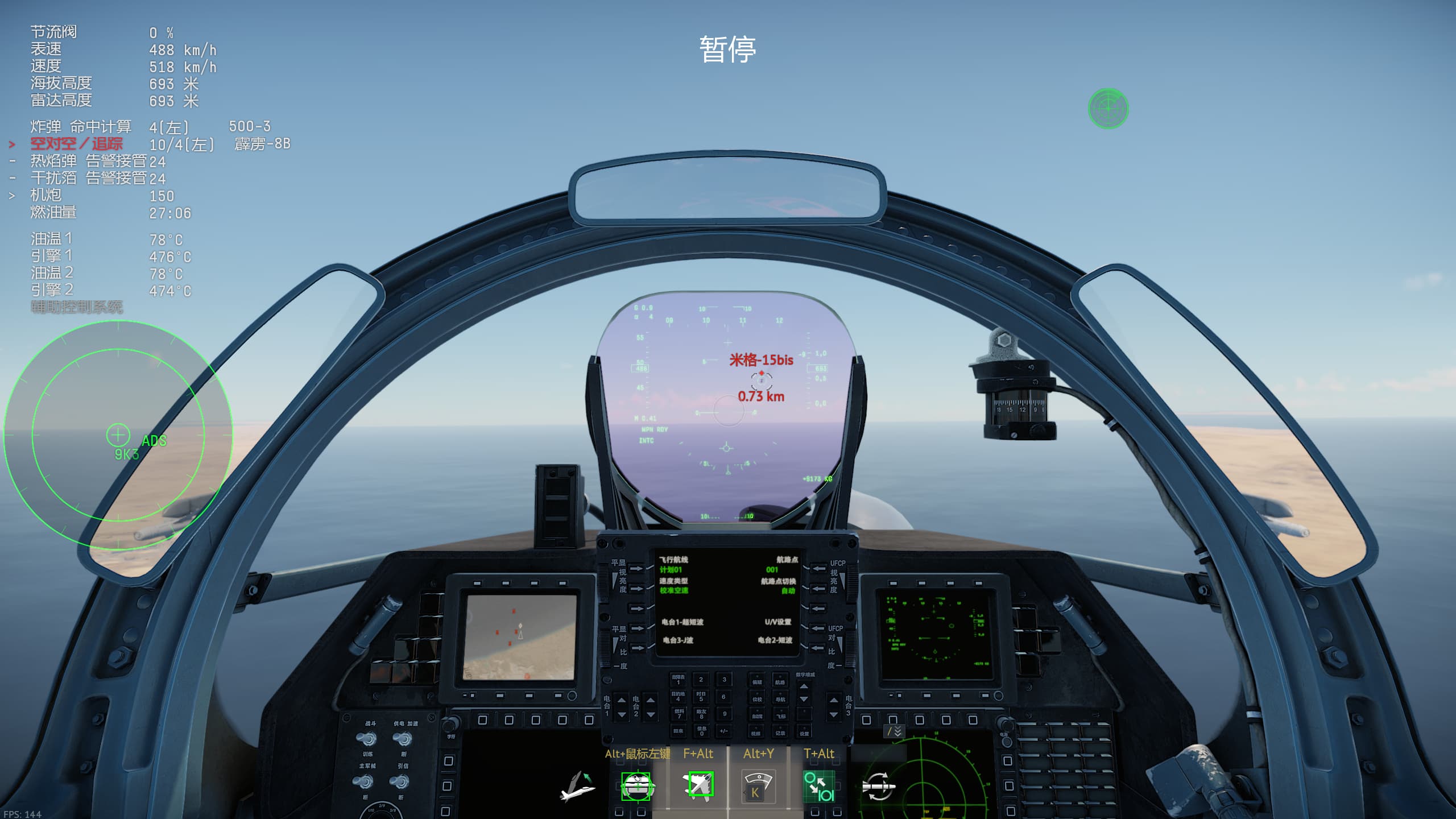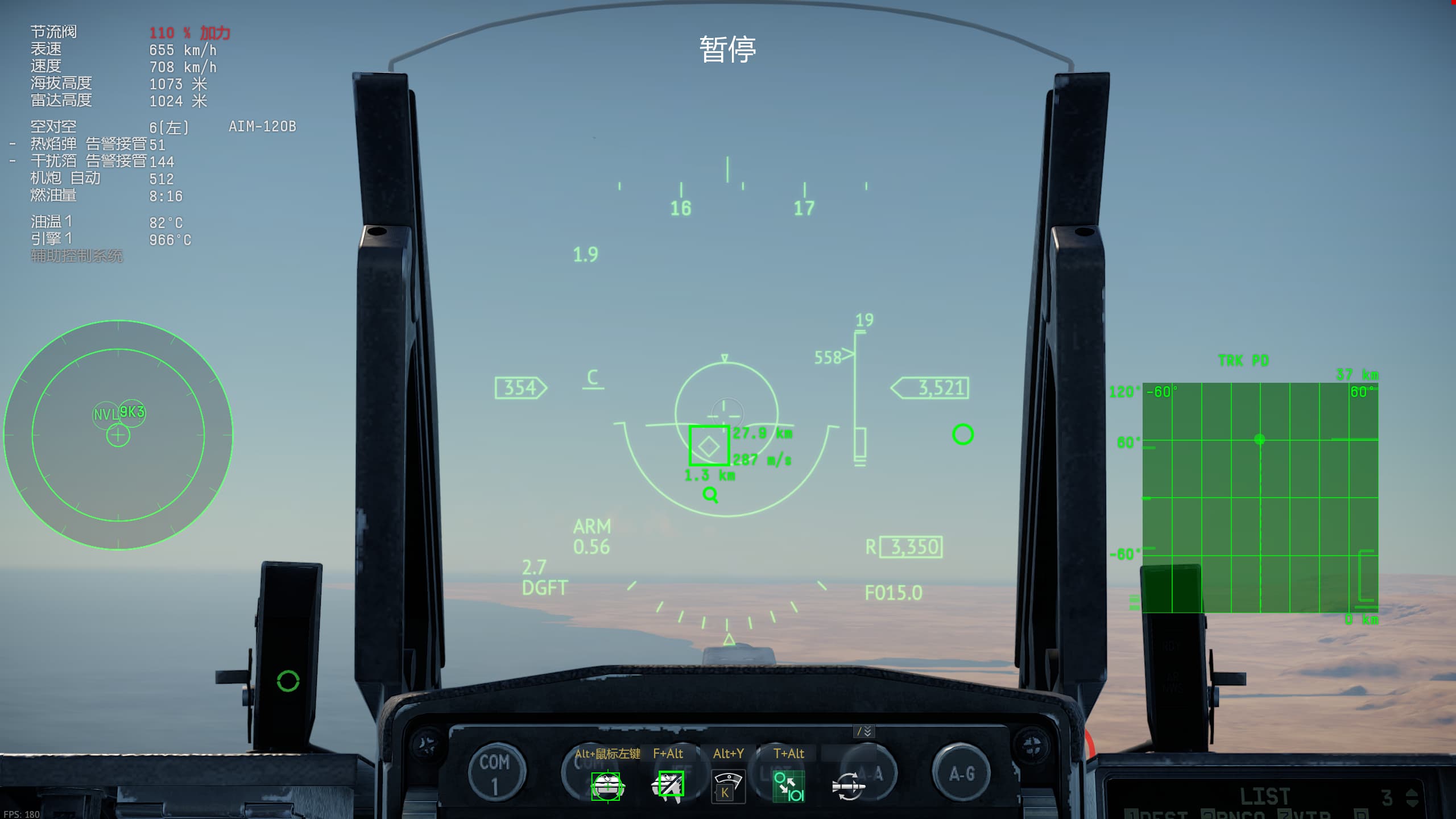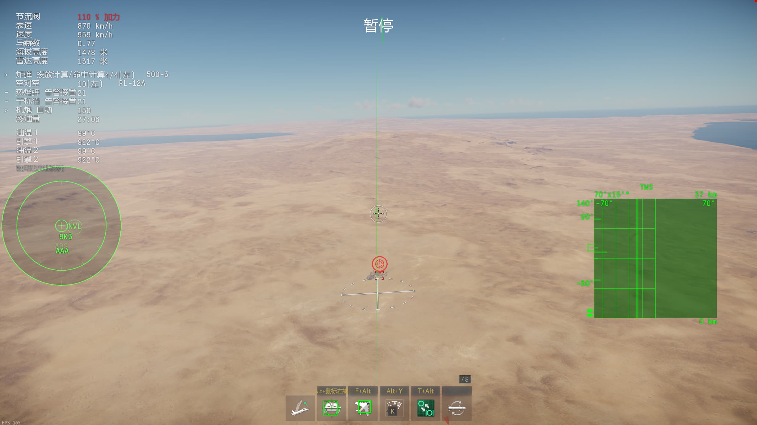 对比一下F16I人家的对空锁定状态,有导弹的动态发射区参考射程,锁定框也会闪
