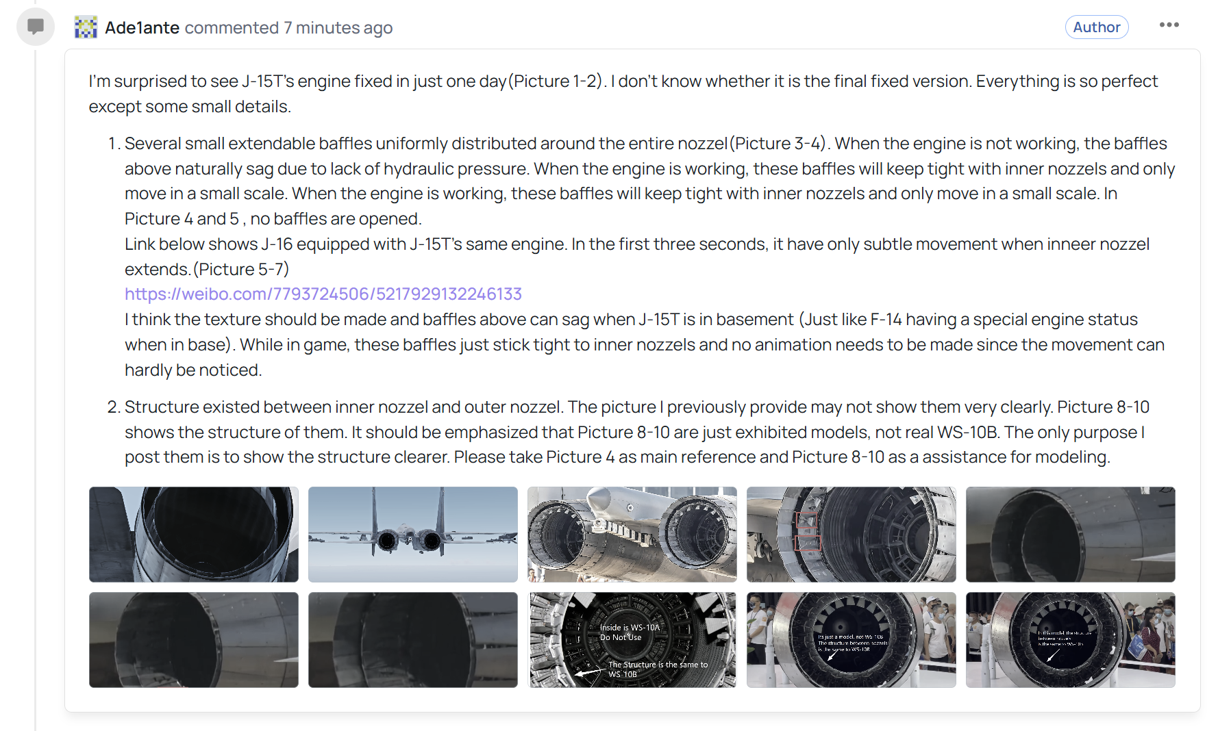 我写的J-15T发动机建模问题这个版本改了,不知道是不是最终版,但依然存在引射喷管内壁没有扰流片,还有作动结构缺失的问题,我看Issue还没改成fix就在下面紧急补充了一条,不知道会不会继续反馈给开发者。