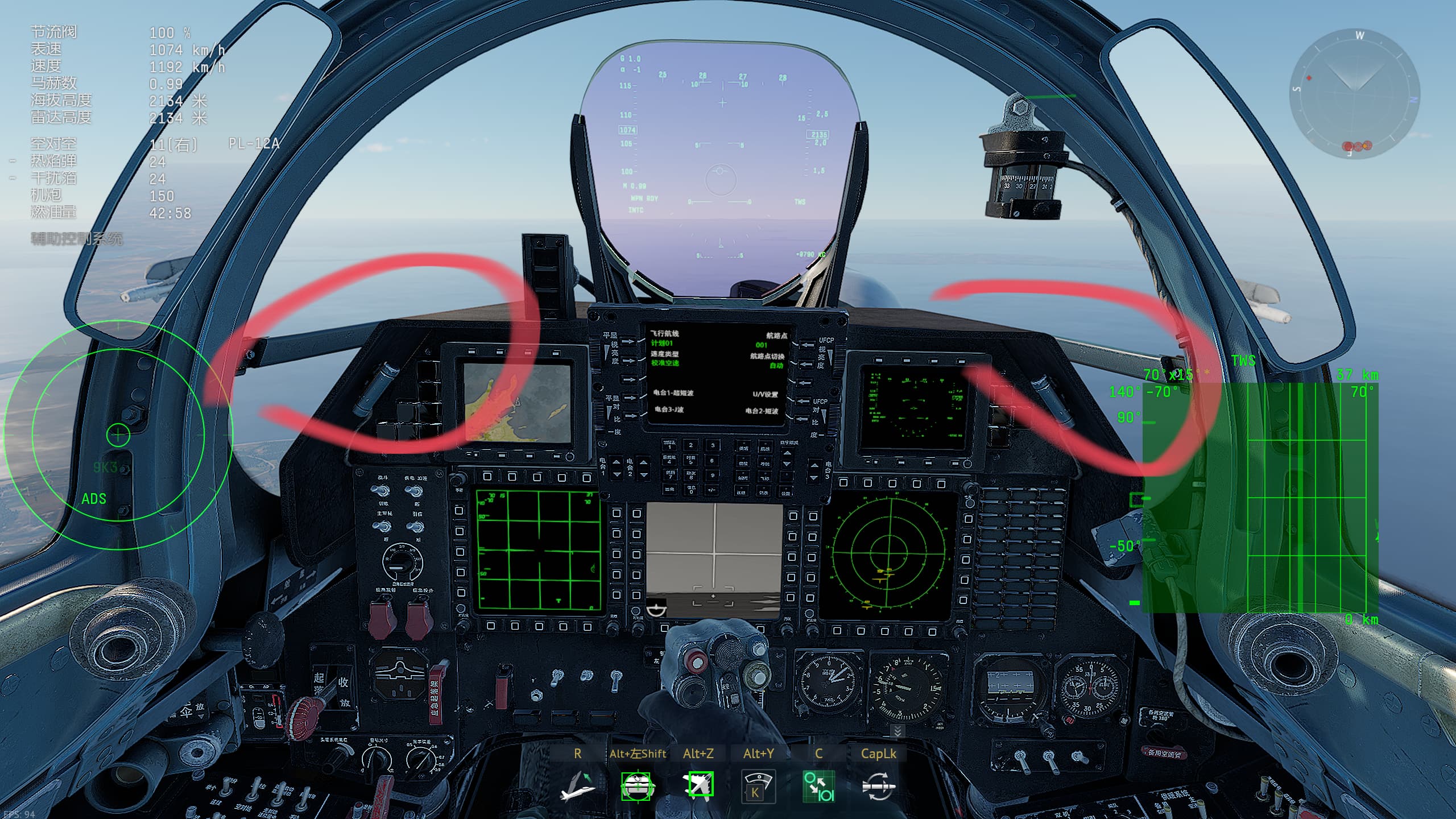 3.对空EEGS(即增强航迹瞄具),无漏斗线,比10C少了根引导线换成了一个方向标