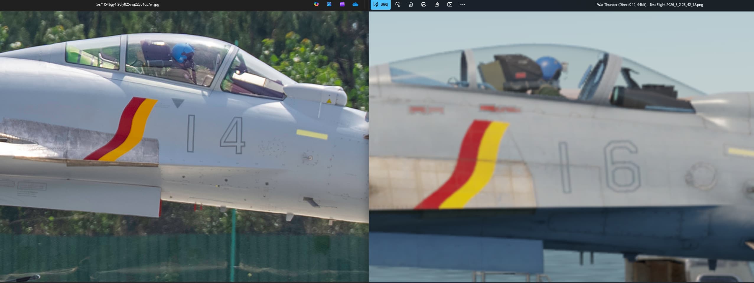 现实里正侧面视角中,两个数字均是垂直于地面,游戏里却略微向左倾斜导致观感很差,此乃错误四(其实你们也可以看到航炮隔热层也做大了)