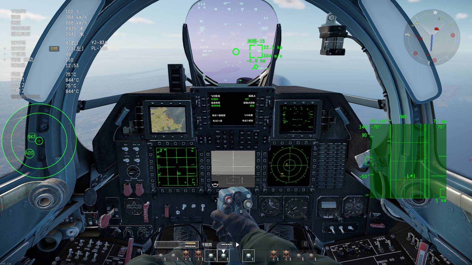 目前根据测试服数据来说歼15t机体太重了,高空又因为ws10b的高空推力出现了bug再加上干扰只有48发导致了这飞机在什么高度战斗都很尴尬,也就是说歼15t是14.7垫底的水平,按常理来说这时候应该加强歼15t了,可是gaijin只是在歼15t的性能曲线上略微调整了下,就目前水平我认为歼15t只能待在14.3的性能水平,那么歼15t这架全世界唯一架,也是最强的重型舰载机在游戏里只能待在14.3这个权重是不是有点太幽默了?那么换个方向就算把ws10b高空性能加强到AL41f的高空水平那这飞机感觉也只能在空战中只打第一波?然后干扰弹就快消耗完了?或者已经消耗完了?然后这飞机就比其他的14.7更容易击落了,那么来对比一下苏30sm2就算ws10b和al41f发动机性能曲线相同苏30sm2的雷达扫描角度依然优于歼15t的雷达扫描范围,且苏30sm2的武器配置也一样强于歼15t的武器配置,据许多中国玩家所熟知ws10b的性能在现实中是al41f同水平甚至超过,ws10b在游戏中表现那么不堪,现在玩家的要求就想把歼15t的ws10b高空性能加强一下,这不过分吧?