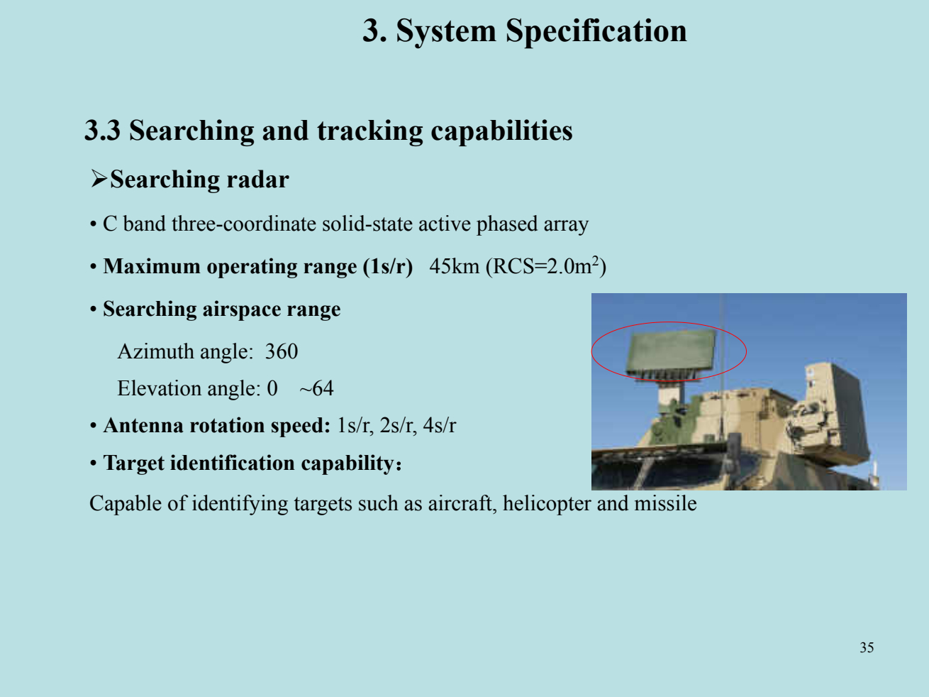 1.搜索雷达: C 波段三坐标固态有源相控阵