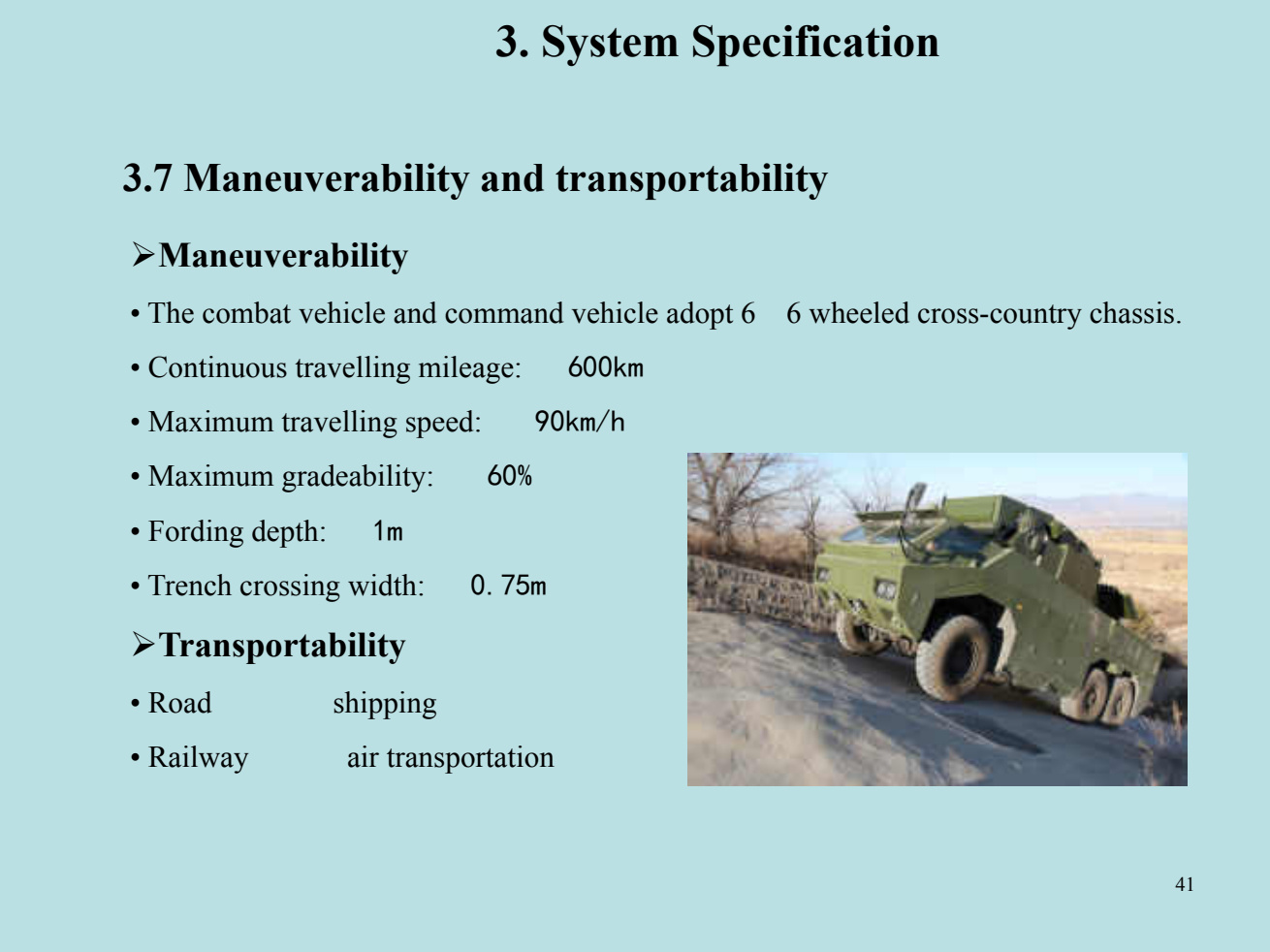 战斗车辆和指挥车辆采用 6×6 轮式越野底盘。