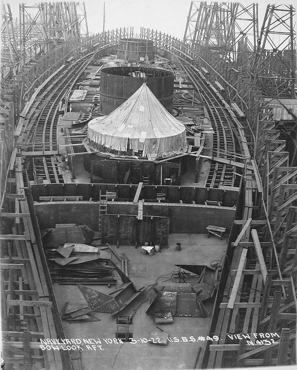 USS South Dakota (BB-49) under construction in 1922, a few months before cancellation; not to be confused with USS South Dakota (BB-57) (source: File:BB-49 PCU South Dakota.jpg - Wikimedia Commons)