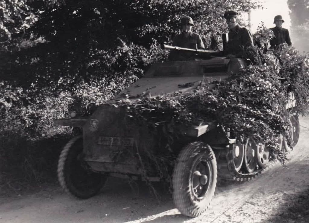 I would like to suggest the Sd.Kfz. 251 with an 2,5 cm Flak Hotchkiss (f) mounted on it, sadly i do not know the history of the exact vehicle, however, there are the decals visible on the front plate of the 12th SS Panzerdivision, so perhaps someone else with more knowlege may know more.