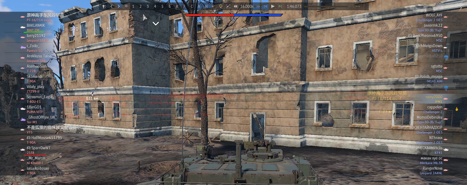 11.0 T-90A, 11.3 M1A1 (0.3 BR difference)