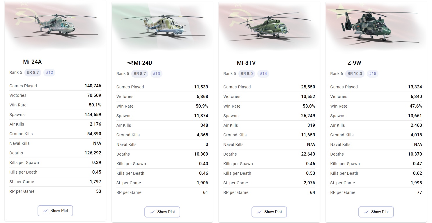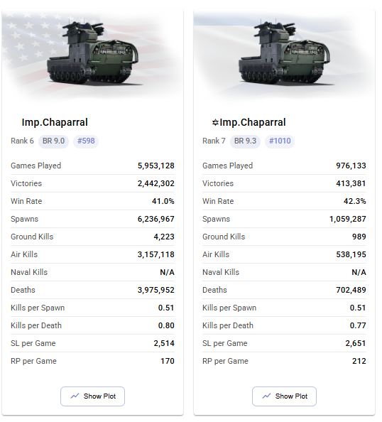 Looking on early helis at 8.3 swinging SS.11s (3.5km) at Gepards, that perform WORSE (according to stats) than 9.7 AH-1 which swing I-TOW (3.65km) at Gepard 1A2 (Stingers) and Roland 1 (roland 3 missile)… makes me wonder if the same skill level is taken into account.