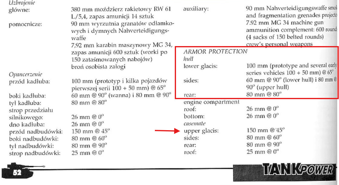 The 50mm plate was installed on the prototype and the early production Sturmtigers (18 total produced 1943-1945) and is present on the the Sturmtiger in the Kubinka Tank Museum / Patriot Park and other museums (pictures below). Although it was not on the later produced vehicles, it was present on the prototype the vehicle is modeled after and approximately half of the production run of Sturmtigers. This would be good change for the tank to better help it against threats it faces in-game which it did not in reality which was the reason it was not installed on later models due to the belief it was not required as the armor was adequate. The Sturmtiger is a casemate vehicle, meaning it lacks a turret like a Tiger for example. Due to this, the Sturmtiger is unable to angle like a Tiger to increase it’s effectiveness of the armor while being able to fight back at the same time. Yet the Sturmtiger is supposed to be up-armored compared to the Tiger H1 and E. So for gameplay purposes, this plate would make sense to provide a little more protection helping it stay in the fight as it was historically intended in close quarters combat scenarios such as in-game. This would still remain a weakspot for the vehicle while not being so thin that lightly-armed vehicles can kill or disable the transmission rendering the vehicle useless. This change would also justify the current battle rating.