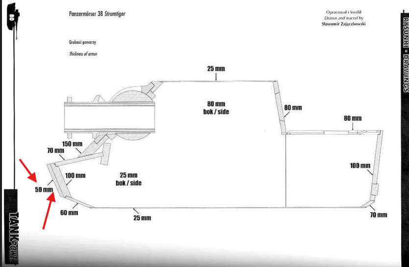The front hull has an additional bolted on 50mm thick plate which is supposed to be on top of the 100mm thick plate, not 100mm only as is currently in game.