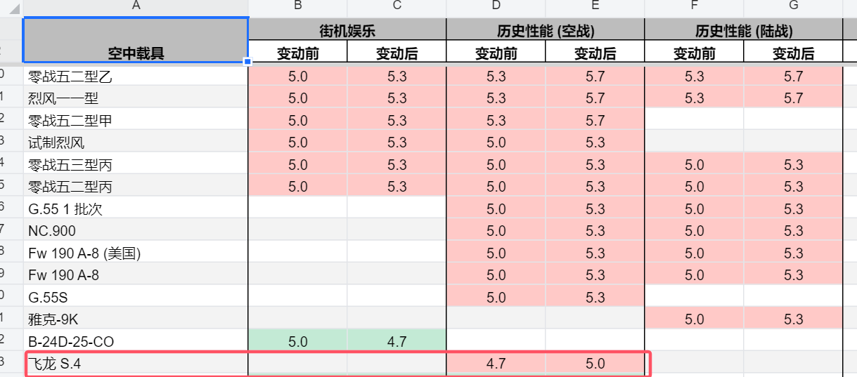 之前在同步部分战机的陆历权重时可能出现了错误,但最终版本里飞龙的陆战权重 (包括在英文表格内) 并没有上调