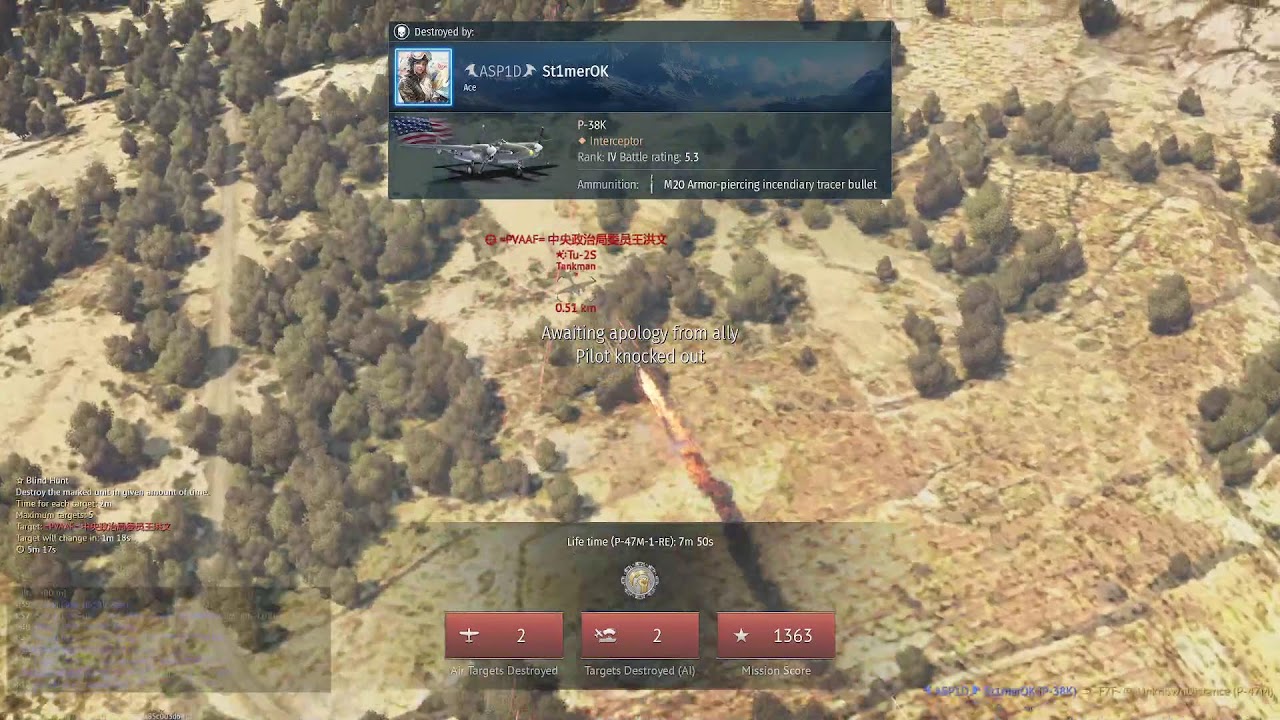 I was using the P-51H again, with the stealth belts as they have the highest percentage of M23 (50%). And on the kills I got, Ill be honest I cant comment much on the time to kill because my aim was horrific both being completely not used to the stealth belts, and the fact I’m not at home on my usual setup at the moment either so I’m not fully comfortable (#throwing excuses out there)