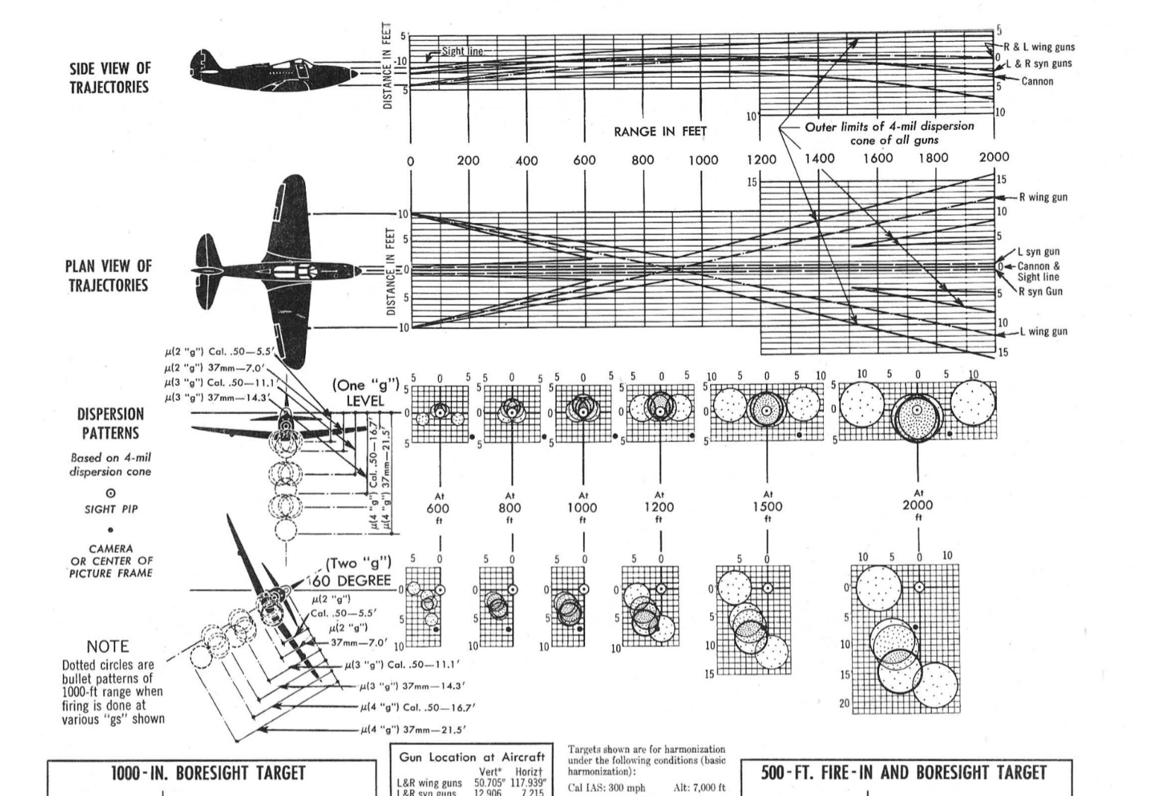With that logic, the P-47D should more likely do serious damage with the .50 cal upgrade turned off since it can spray a larger target. But as you can try out yourself. That’s not usually the case. Why? Because .50s aren’t magical shotgun blasts that just coat the enemy bro. You’re a slave to the harmonization of your guns. If you’re too close, you’re gonna hit the wings, if you’re too far outside of your exact convergence. You’re going to have your rounds hit their wings too. You can see this easily represented with the P-39 convergence harmonization. In the manual they have it almost the exact way War Thunder does it by having the outboard guns reach a certain point for this aircraft because of the nose mounted guns