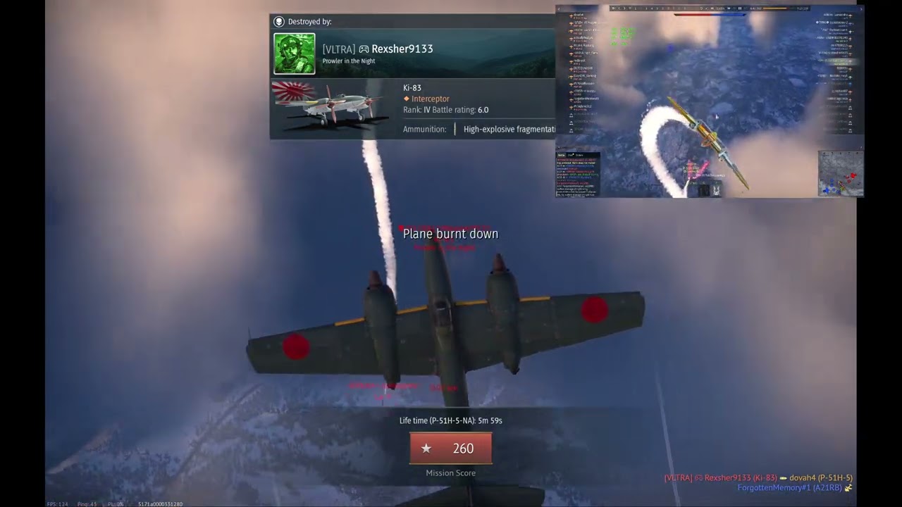 Now for the fifties. Why do you think I showed only clips? Well, to begin with. I did the P-51H first. Little did I know I would just get jet match after jet match and it was an utter nightmare so I couldn’t achieve a full match like I did with the Ki-44. I would either get no kills or a singular kill and then die. So I just compiled what I had. I didn’t want to show just clip after clip after clip of getting no kills and I compiled the clips together to show a varying range of the .50s.