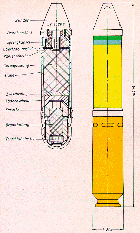 So this table would correspond to the 370g Mine-Incendiary shell, which has roughly 40g HA 41 filler and what’s basically a 20mm Incendiary shell in the back, making it heavier.