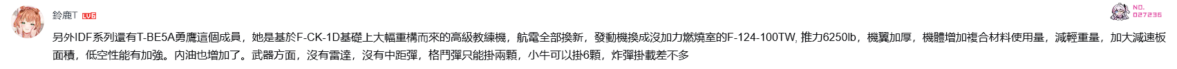 最后就剩下3线了,这个就很简单了,CAS专精线,目前最后的飞机是jh7a,后接大陆和对岸的两架新锐5代高教/攻击机,之后就是PLA唯一取代歼轰7A的自研飞机J16,作为多用途战斗轰炸机,对标美国F15E俄罗斯苏34,当然PLA承担这种作战任务的还有苏30mKK和苏30MK2, MKK已经出了,而MK2在俄系也已经有了,并非九级载具,所以不纳入讨论,而歼轰7A的后续型号也有少量列装,就是歼轰7B,其性能同样大概率不是九级载具,不纳入讨论。