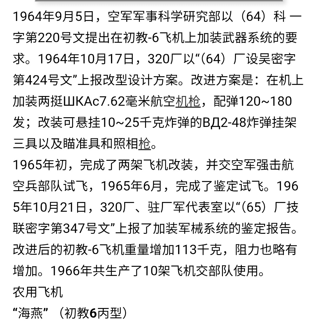 So lately I’ve been reading a lot about the CJ-6, I already knew about it from previous mentions but I decided to look deeply into it too see what’s up, so apparently the CJ-6B was the patrol aircraft version that was armed with both guns and bombs but finding performance information has been difficult while the available specs are from the A version the B which had small inprovements and a new engine with 300 hp is pretty unknown, and if the flight performance is unknown the armament information is even more unknown(at least in english) besides some very ambiguous mentions of “it could use 2 machineguns, rockets and bombs” but I come across this: