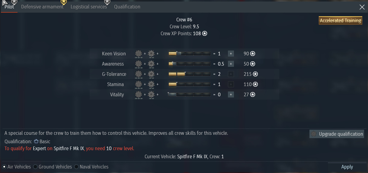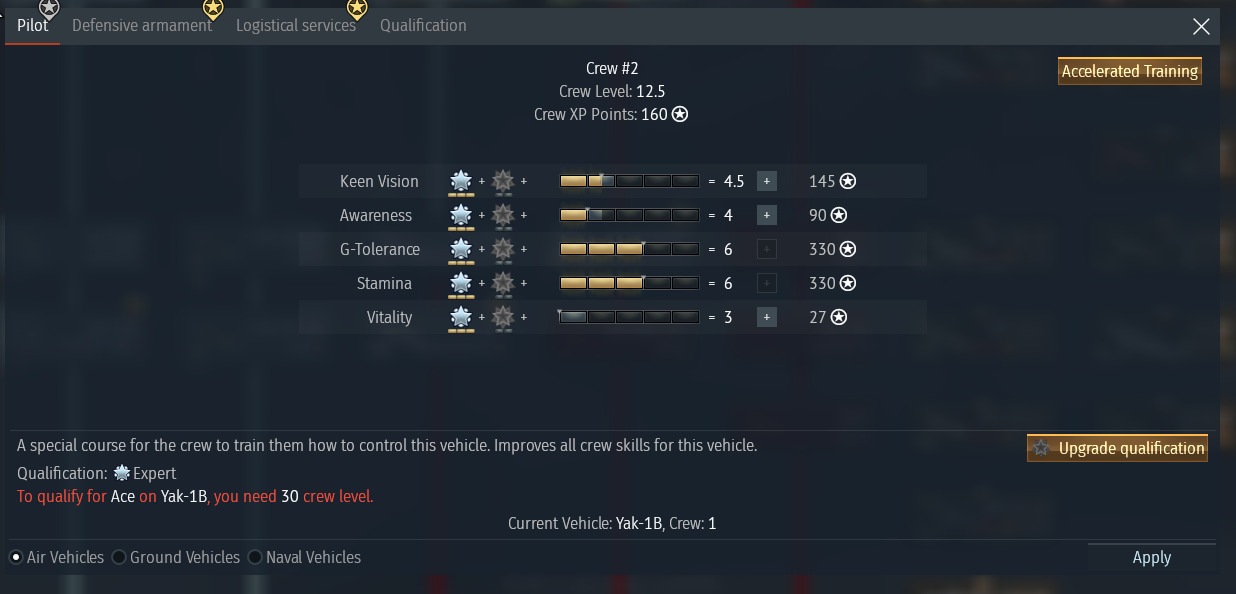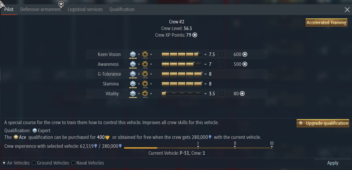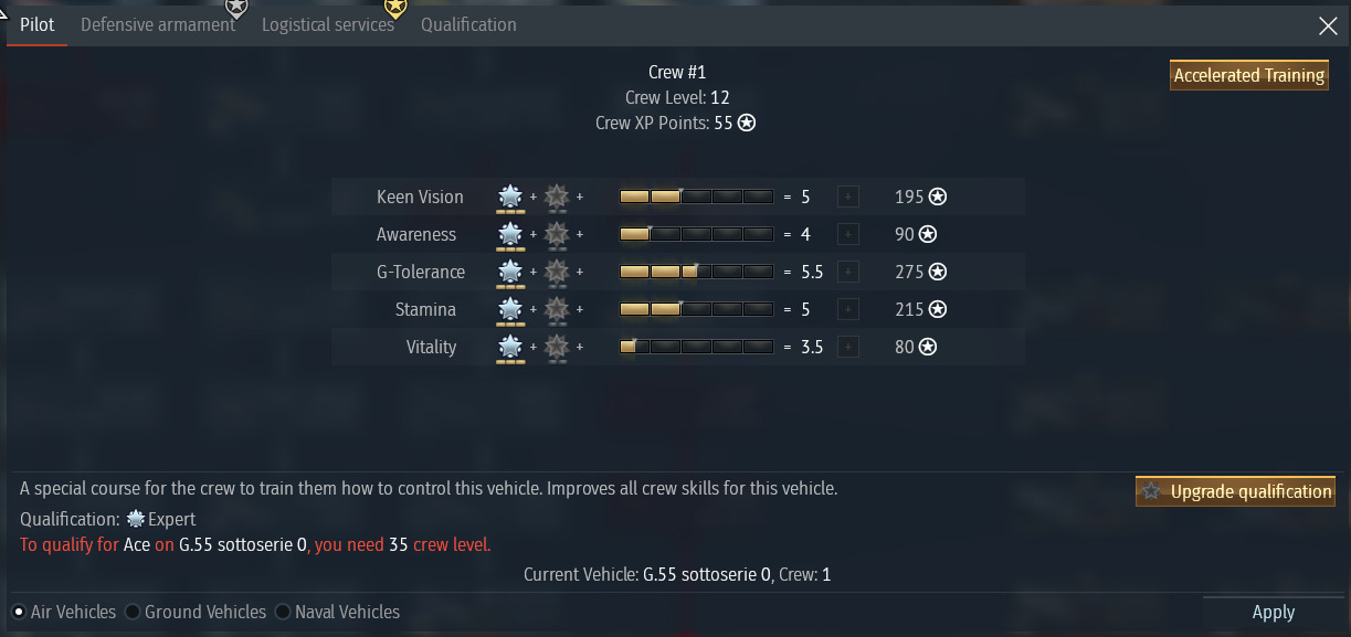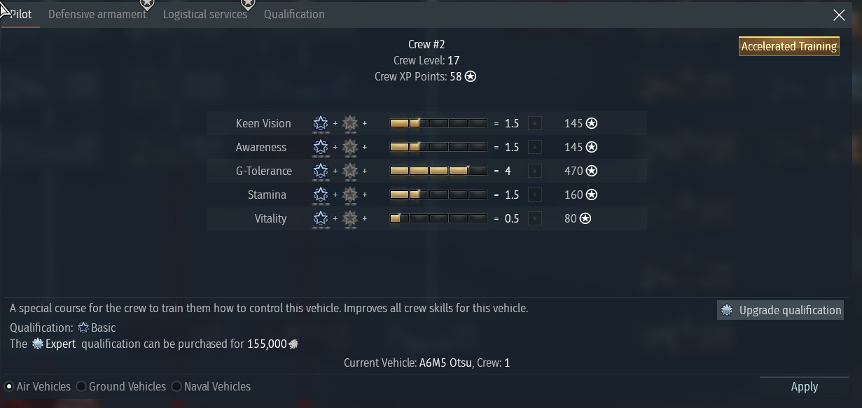 Again, there’s less relevance of crew level in tank than in plane. Try flying a top tier jet in custom battle, one in expert crew one in new crew. see how long you can pull 7G without blacking out and compare the TTB on botch crew.