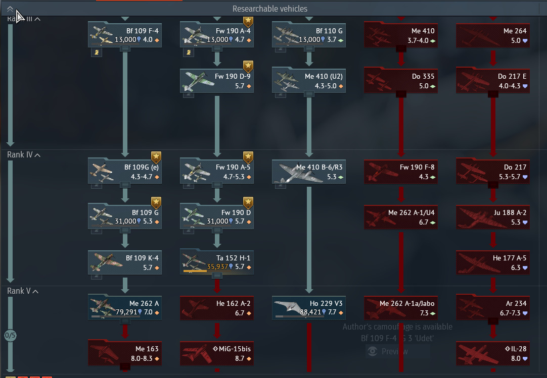 Now look at my 2 crew slots I fly planes in (a 109 slots and a 190 slot. The 109 is played way more often than the 190. I only play the 190 when the BR bracket is 3.0 to 4.0 in sim and only if the enemy team is mostly americans.)