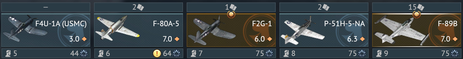 Hence why USA & Japan has 1 “boat plane” (P-51C is sitting in my F6F-5’s position due to broken carriers, I’ll have to adjust now that they fixed it), 1 “Fast land plane/interceptor” and 1 “generic land plane.”