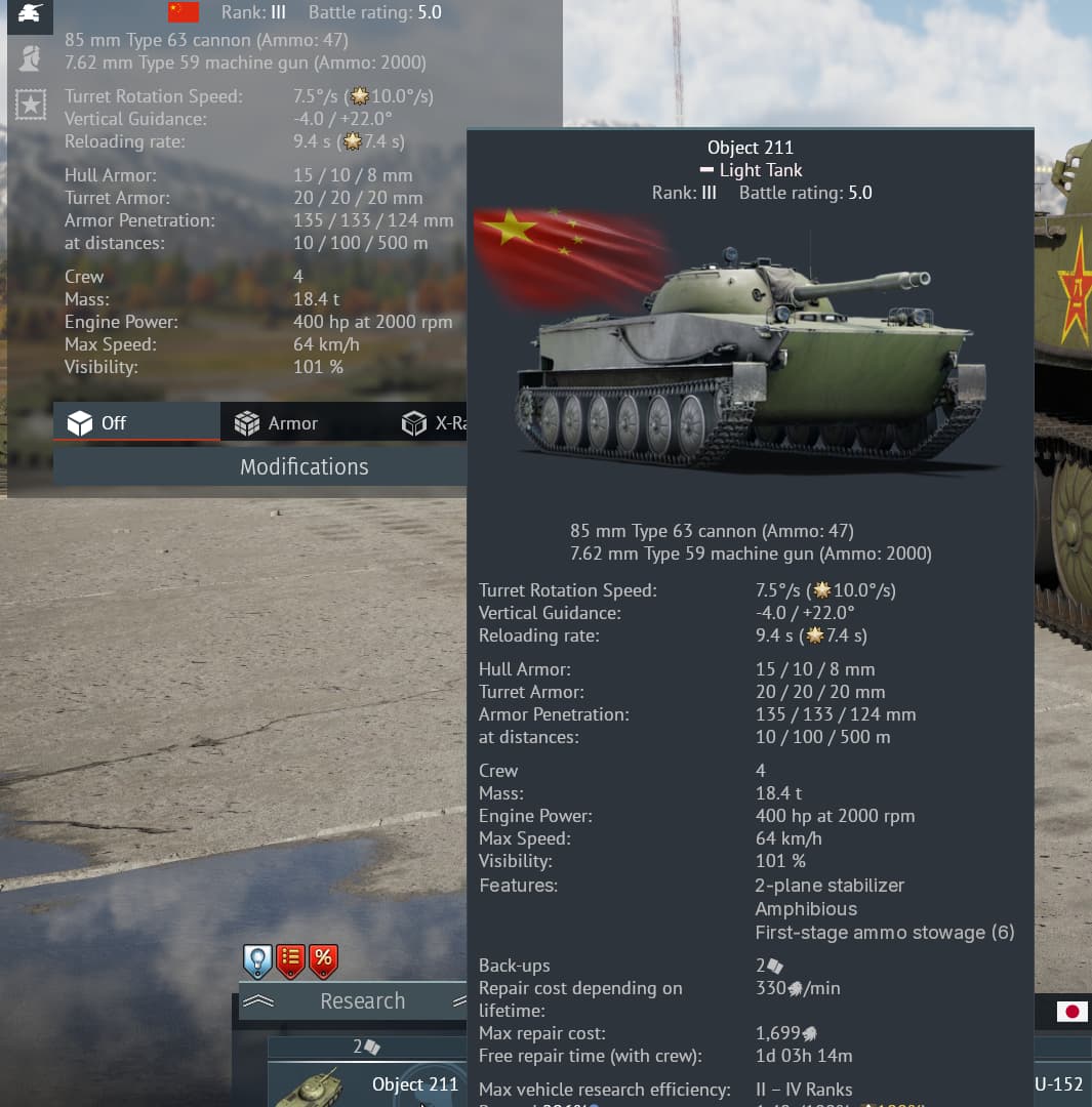 Now of course I do know that this stats card is changing very soon with the Ninth Wave update, I just don’t have the dev server update running on my game. But I beleive the new stat cards do include a “Features” section, and I believe that amphibiousness should be added there to applicable vehicles.