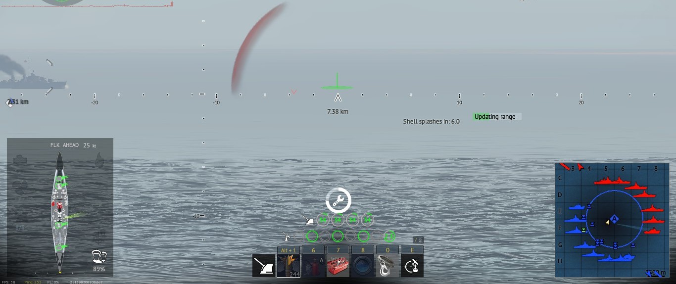 In update 2.9 “Direct Hit” (7th September 2021), when major weapon control changes were made for artillery ships, the interface in naval binoculars was also altered. The corrected range was now tied to the target selecting frame in the naval RB.