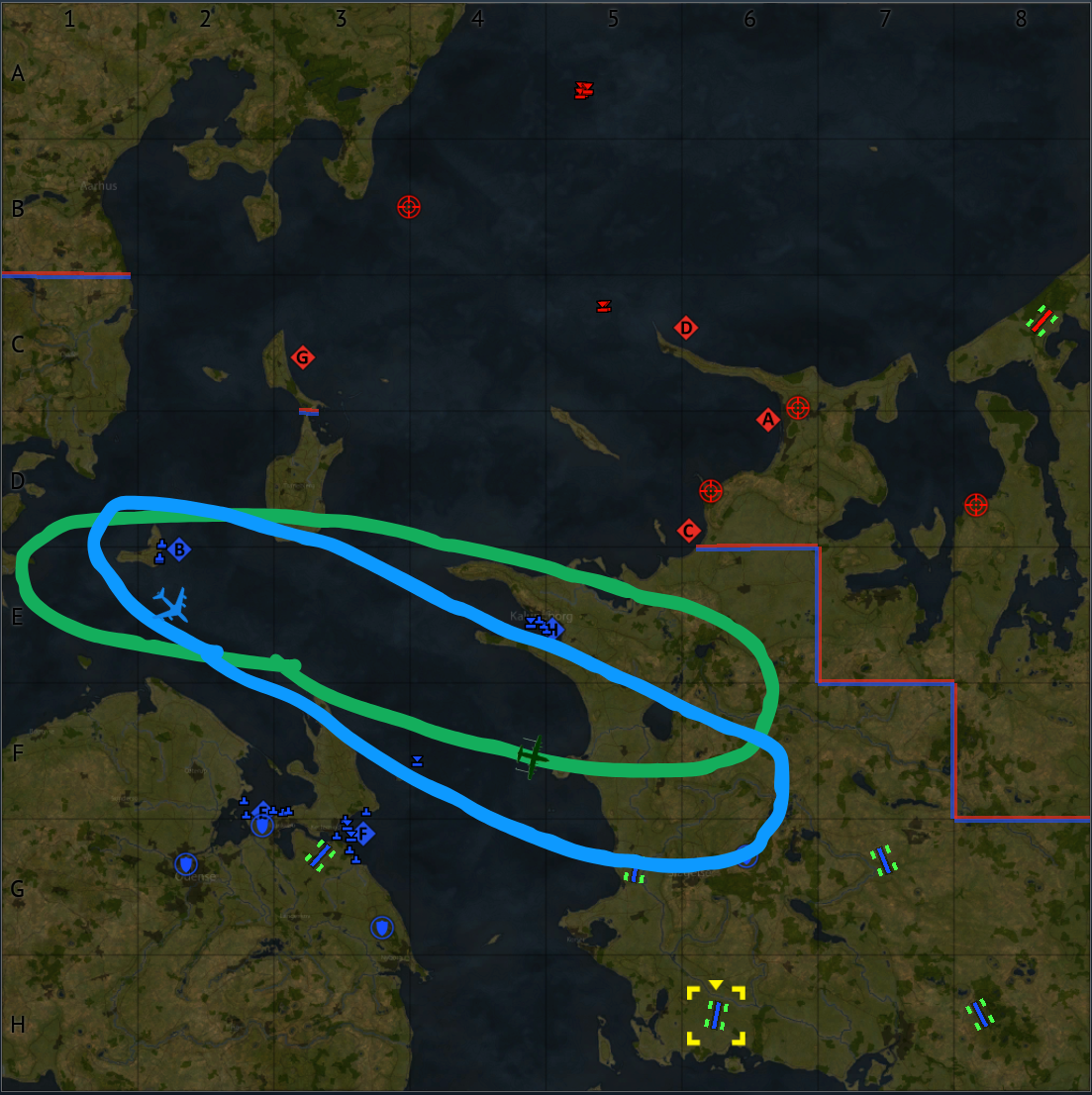 The green line represents a tanker at lower altitudes meant to refuel slower attackers that would struggle to reach the higher tanker.