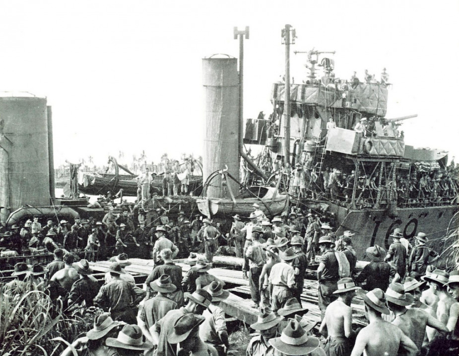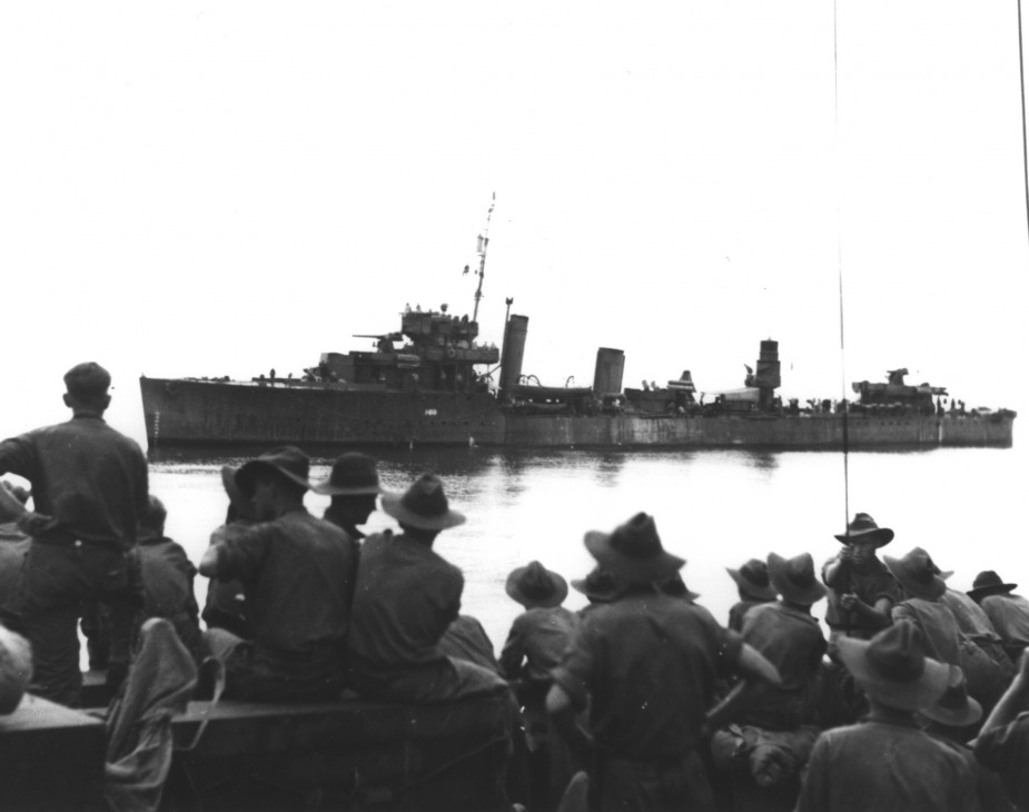 By 1944 she was also transporting troops around the Pacific, going between New Guinea and Sydney. She would sail for Waterfall Bay, 80 miles off Japanese Rabual, landing 56 guerillas. By the end of June 1944 she was escorting convoys around New Guinea. In early 1945 she bombarded Japanese positions around the Anumb River. She was in refit on the 18th of August, then sailing for Langemak once completed.