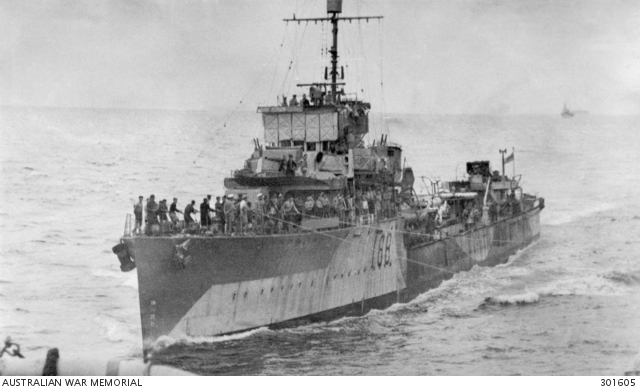Upon the Australian declaration of war in September 1939 she would sail to Singapore, meeting with her sisters who had also moved to Singapore from other Australian ports. Then the four V&W Class ships, and the Scott-class Leader, HMAS Stuart, sailed independently for Malta in the Mediterranean. HMAS Vampire would arrive in December.