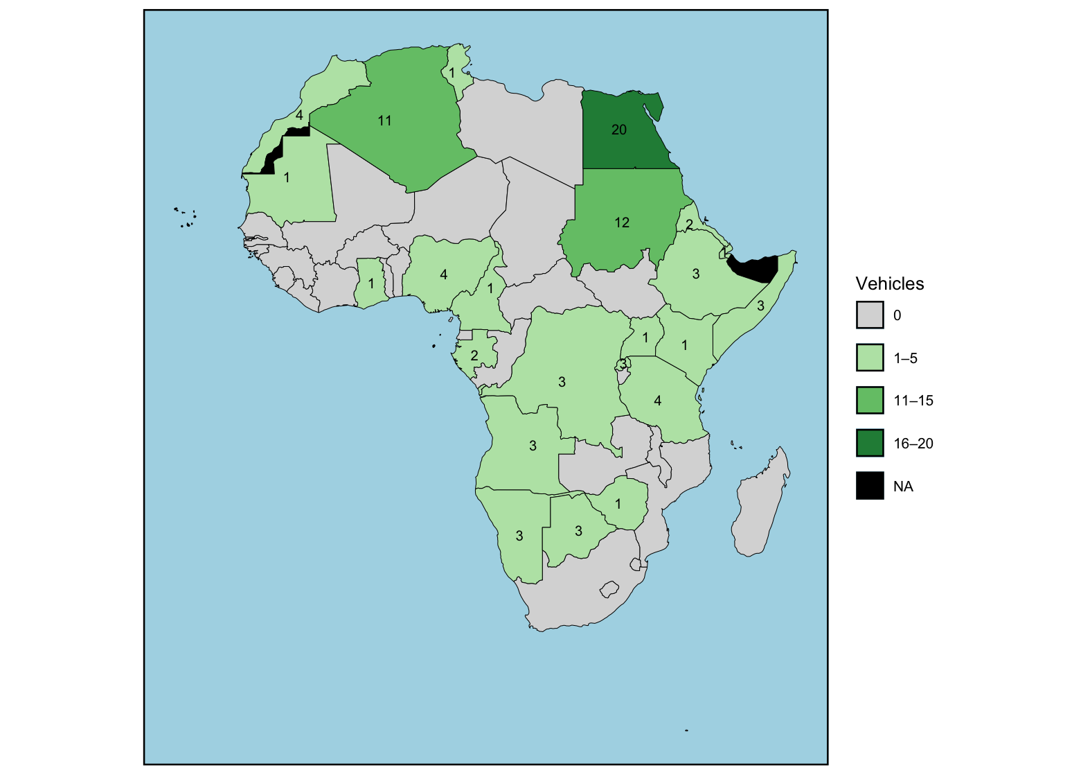 This tree contains 88 vehicles from 23 countries out of Africa’s 54. Egypt (20), Sudan (12), and Algeria (11) have the most vehicles.