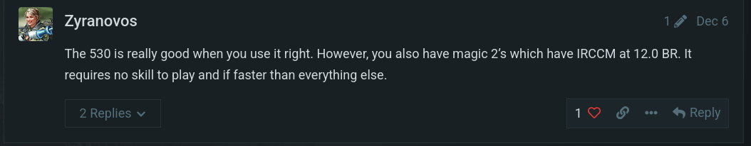 Not arguing it should be lower, it’s fine where it is. Gets 2 super good missiles but is useless outside of that.