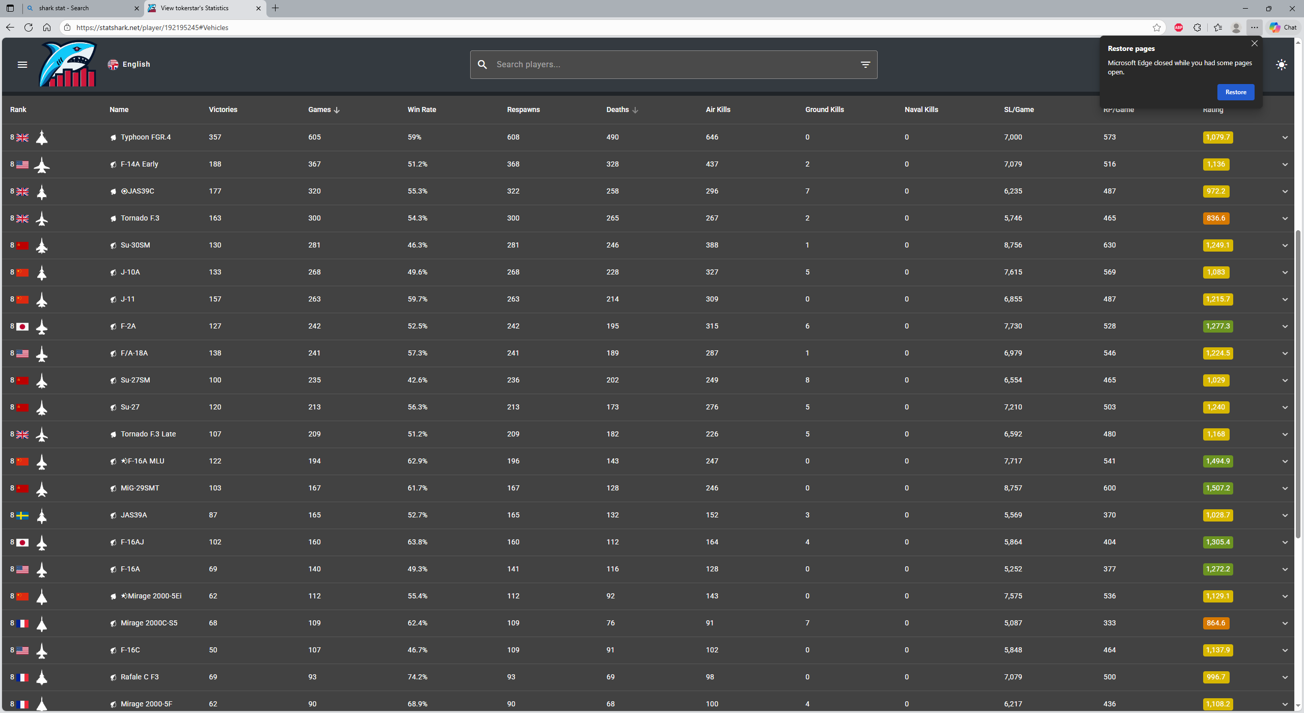 Can someone explain this to me plz. I feel like I get slapped in the F16a. How is it one of my best? I dont bomb etc, where has the score come from? SS includes AI kills and puts my harrier as my best vic I own just because Iv used it to do a few wagers but f16 isnt that. Is shark stat pretty useless or am i missing something?