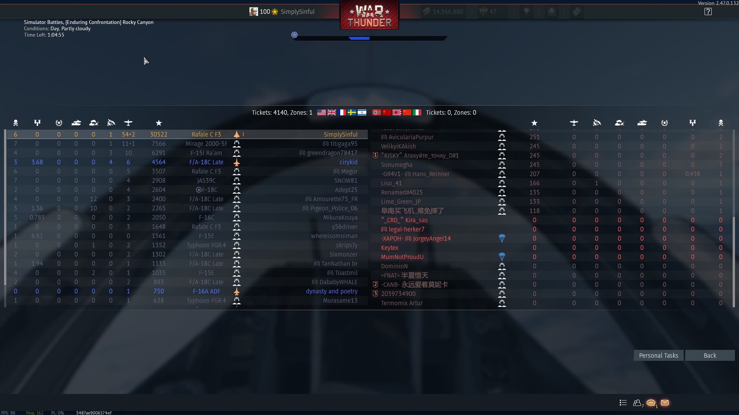Except killing top tier with the Rafale was not done with a large squad in one game; it was done by spreading people out to multiple games so that anyone that quit one game would only have the option of picking a game with the Rafale on their side or not playing the game. This is how I know @kizvy hopped from one lobby against SimplySinful in the Rafale to join another one where I would be on his team in the Rafale. We also left the two person squad of Su-30s alone to effectively cover one of the other lobbies. After 4 hours or so on a Satuday…I think the only available lobby was a full mixed Denmark.