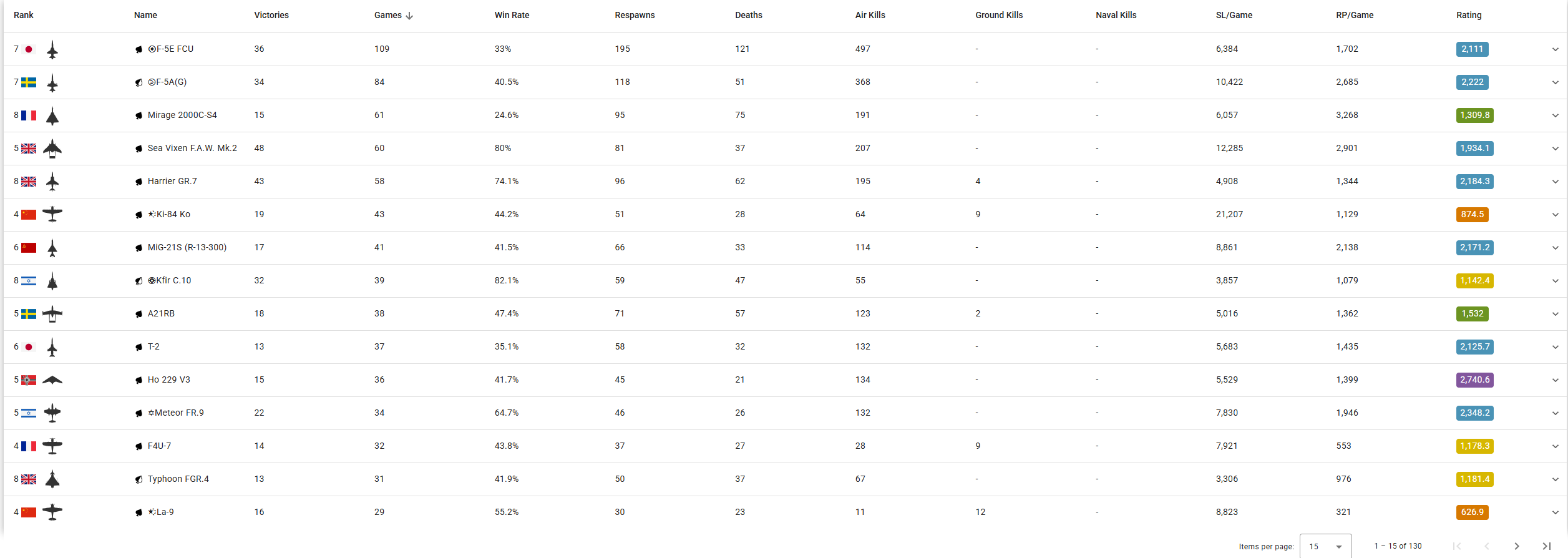 Notice how I can pick any plane in the list and I will have far more deaths than I do games? My KD isn’t as high but I actually stick around and play the game instead of quitting once someone gets the jump on me or kills me.