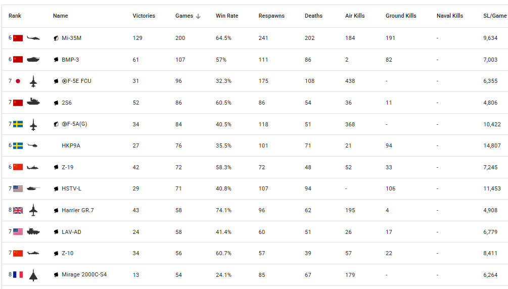 My top 12 vehicles for sim this year are 4 planes, 4 Helicopters and 4 Tanks! None of which are in Rank 5 :p Oh look, someone is playing Warthunder and not just air sim! :p