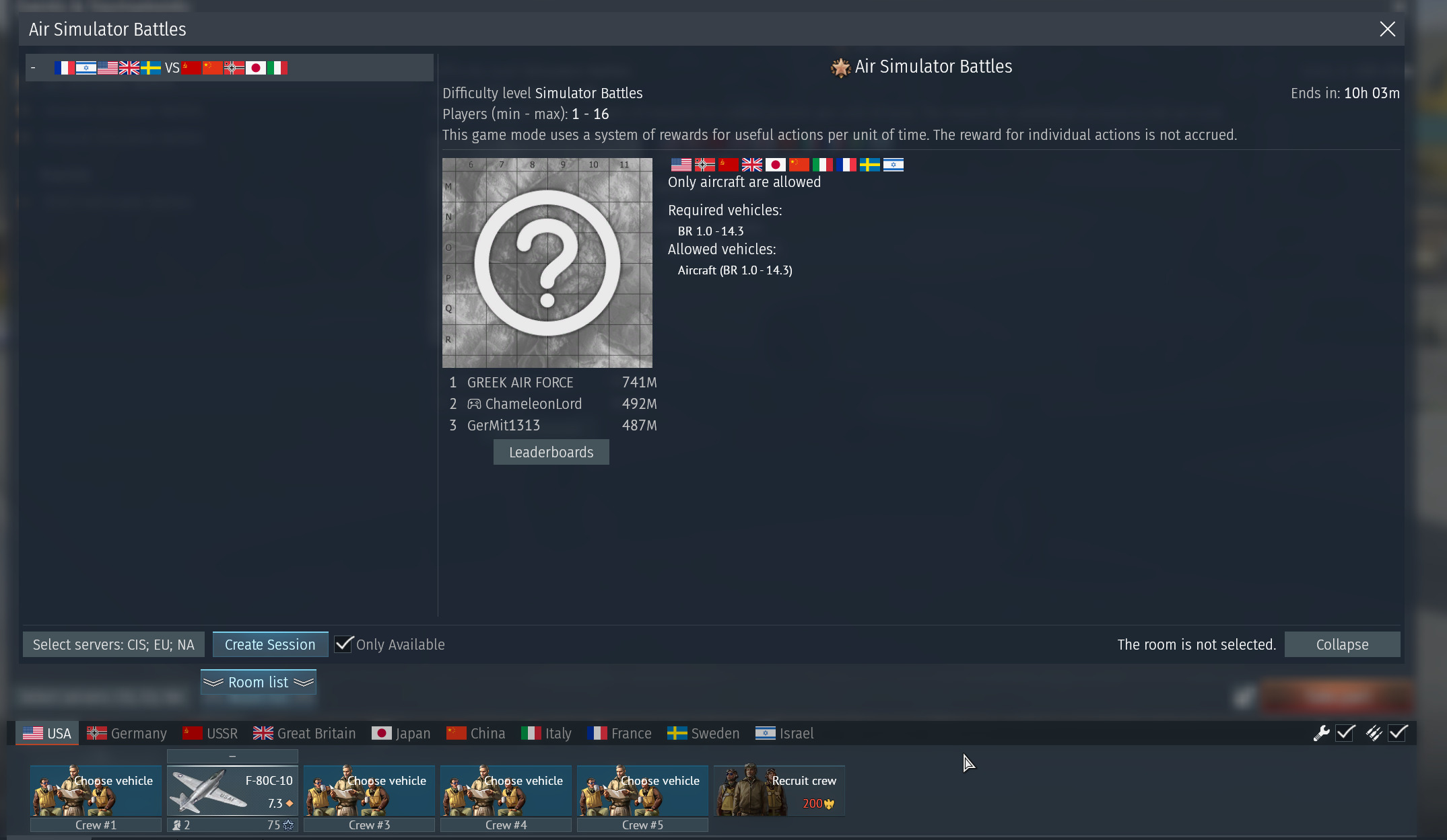 Why are there no games available for the F-80C right now? It has infinite WEP and can finally be better than the Su-11.