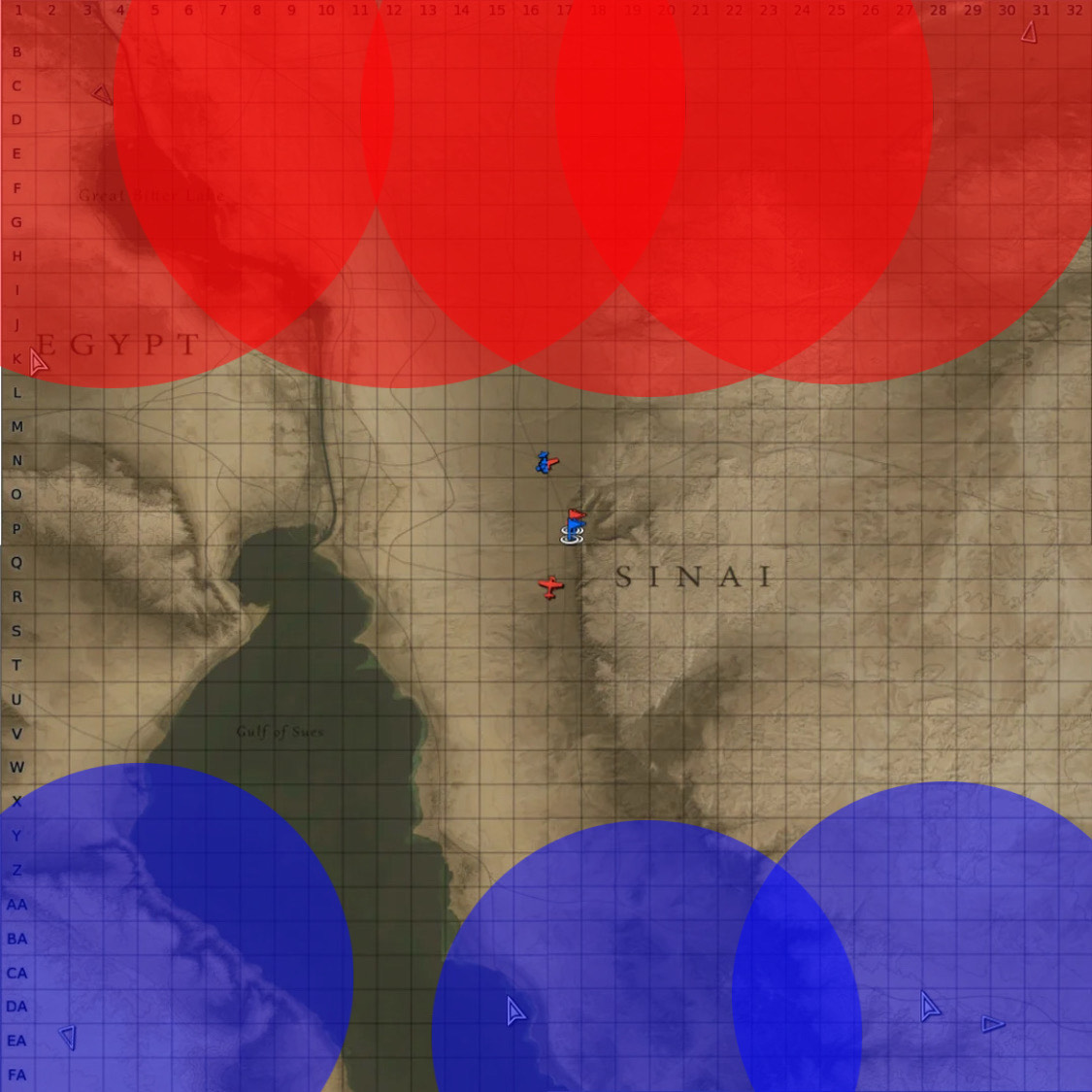 This is Sinai 128x128 and the circular zones are different Sam systems we have in game (red is buk blue is nasams) from this example I really don’t understand your argument of Sam’s with 40km or more range will be hard to implement in 128x128 maps