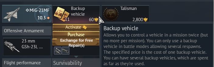 I am suggesting to add a button in the vehicle backup menu under the “Activate” and “Purchase” buttons that will allow you to exchange the backups you have equipped to free repairs for that vehicle.