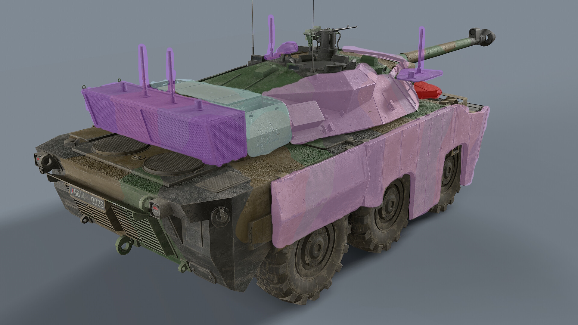 An infrared missile jammer, the EIREL, was installed on the left front of the turret, jamming missile guidance by 20° horizontally and 10° vertically. Already in the game on the AMX30B2 Brennus and VBCI.