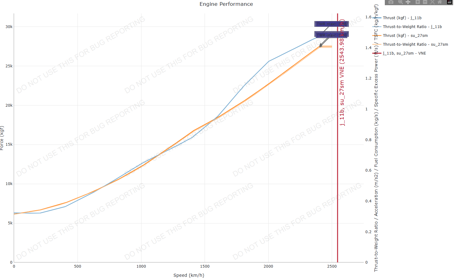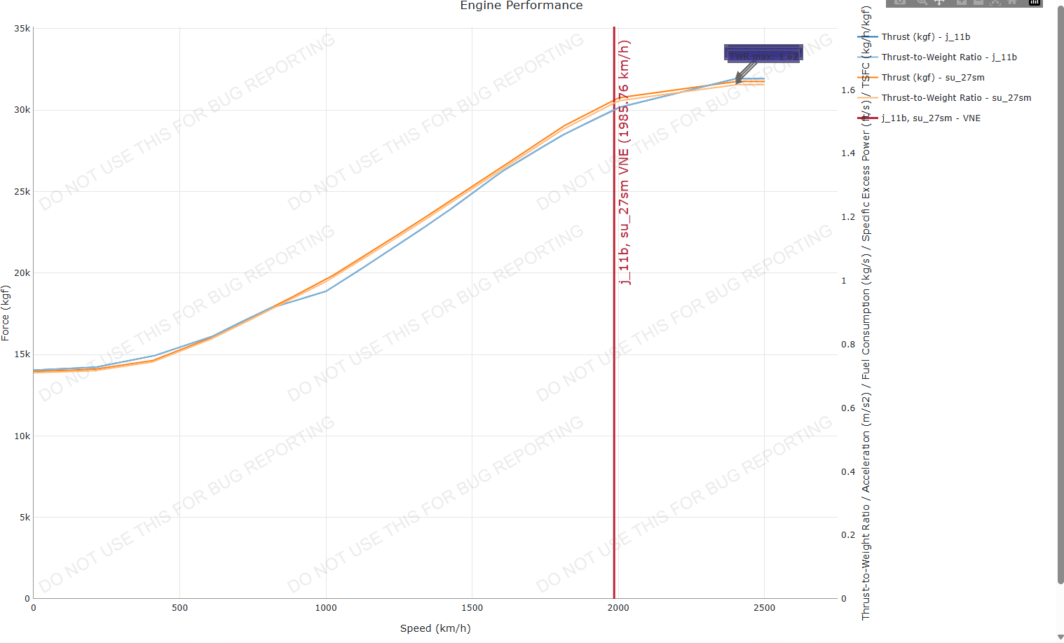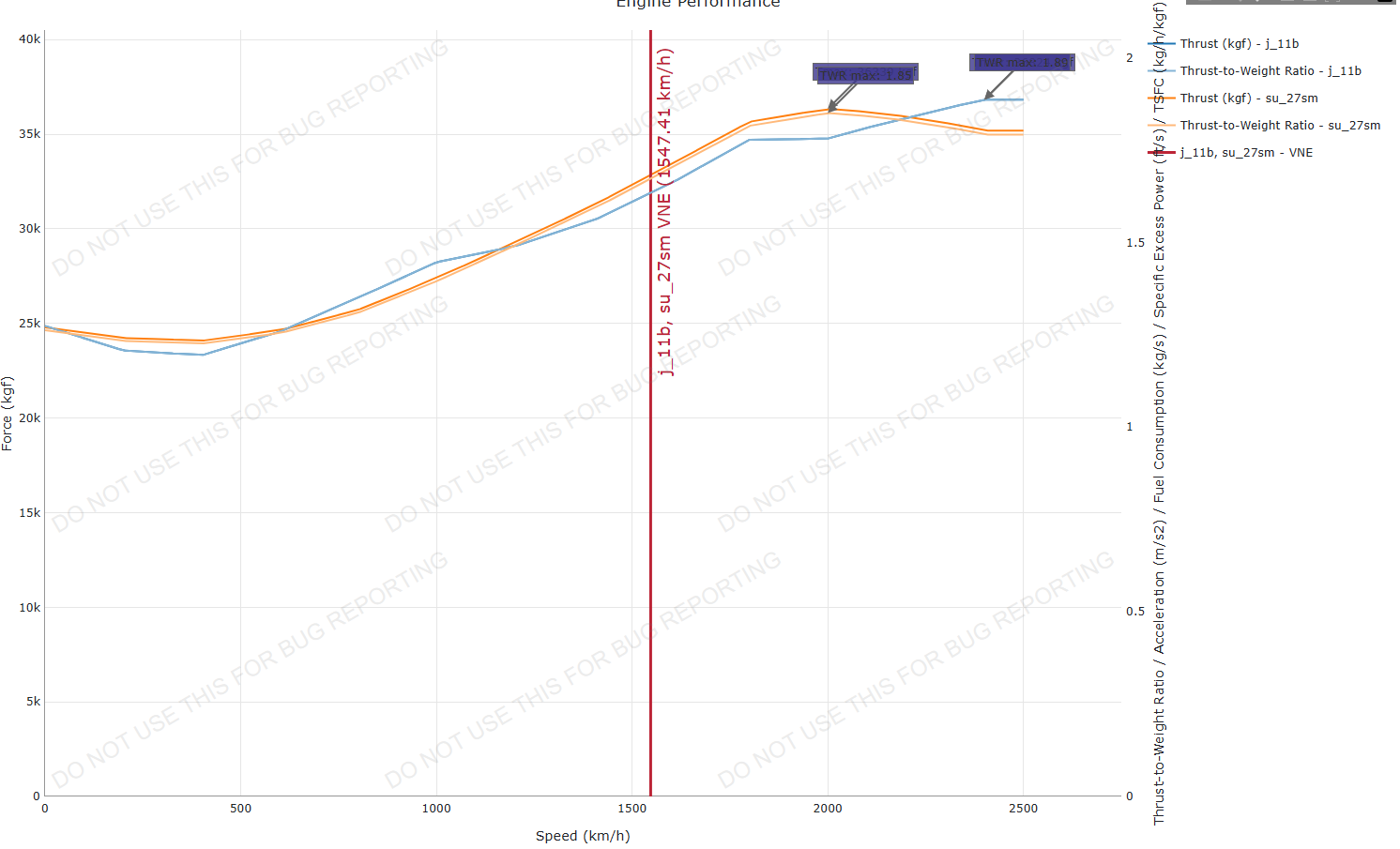 How much peak thrust is there, and is the thrust curve better too? I don’t have the Su-27SM, but the J-11B has very good engines.