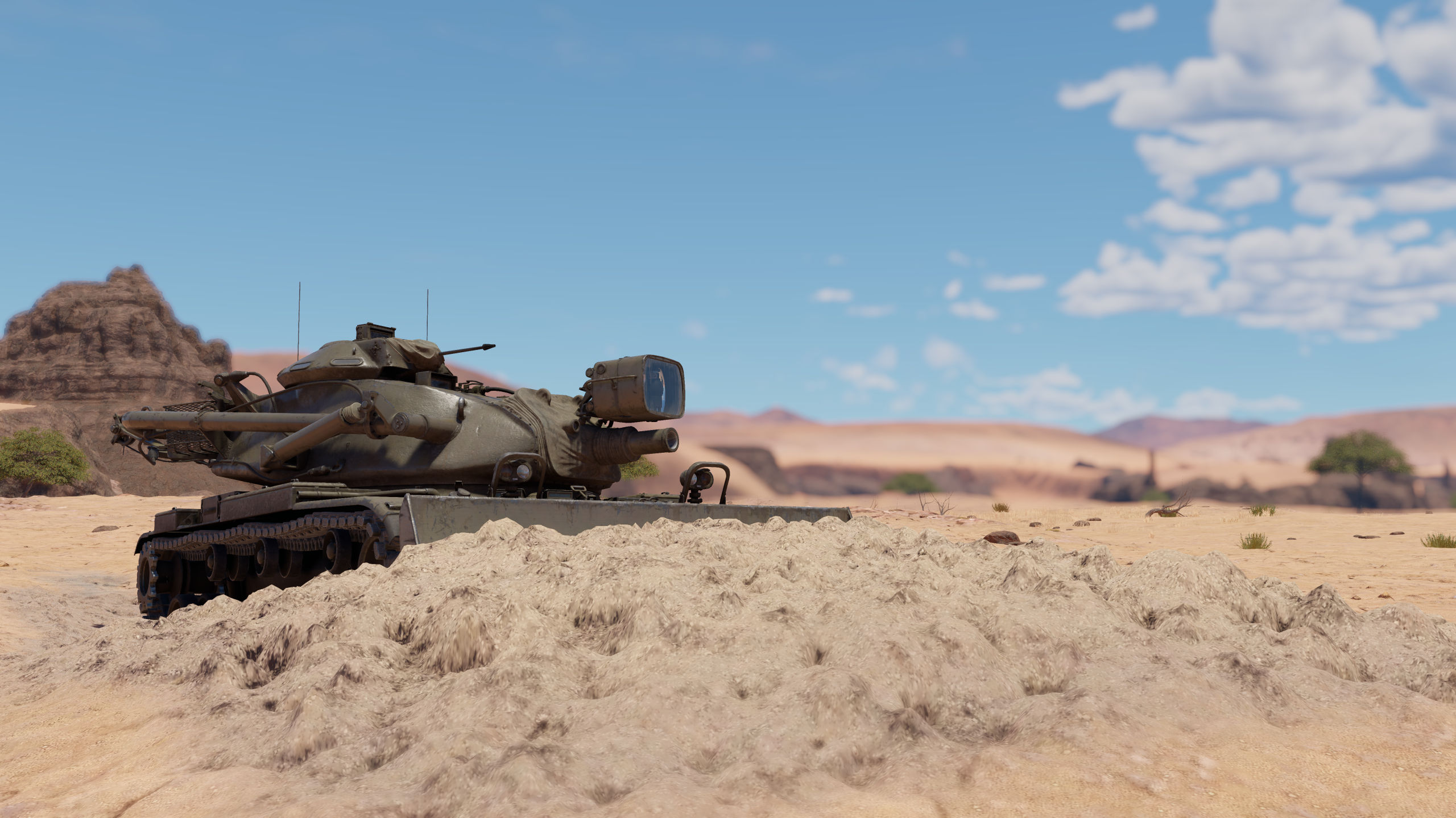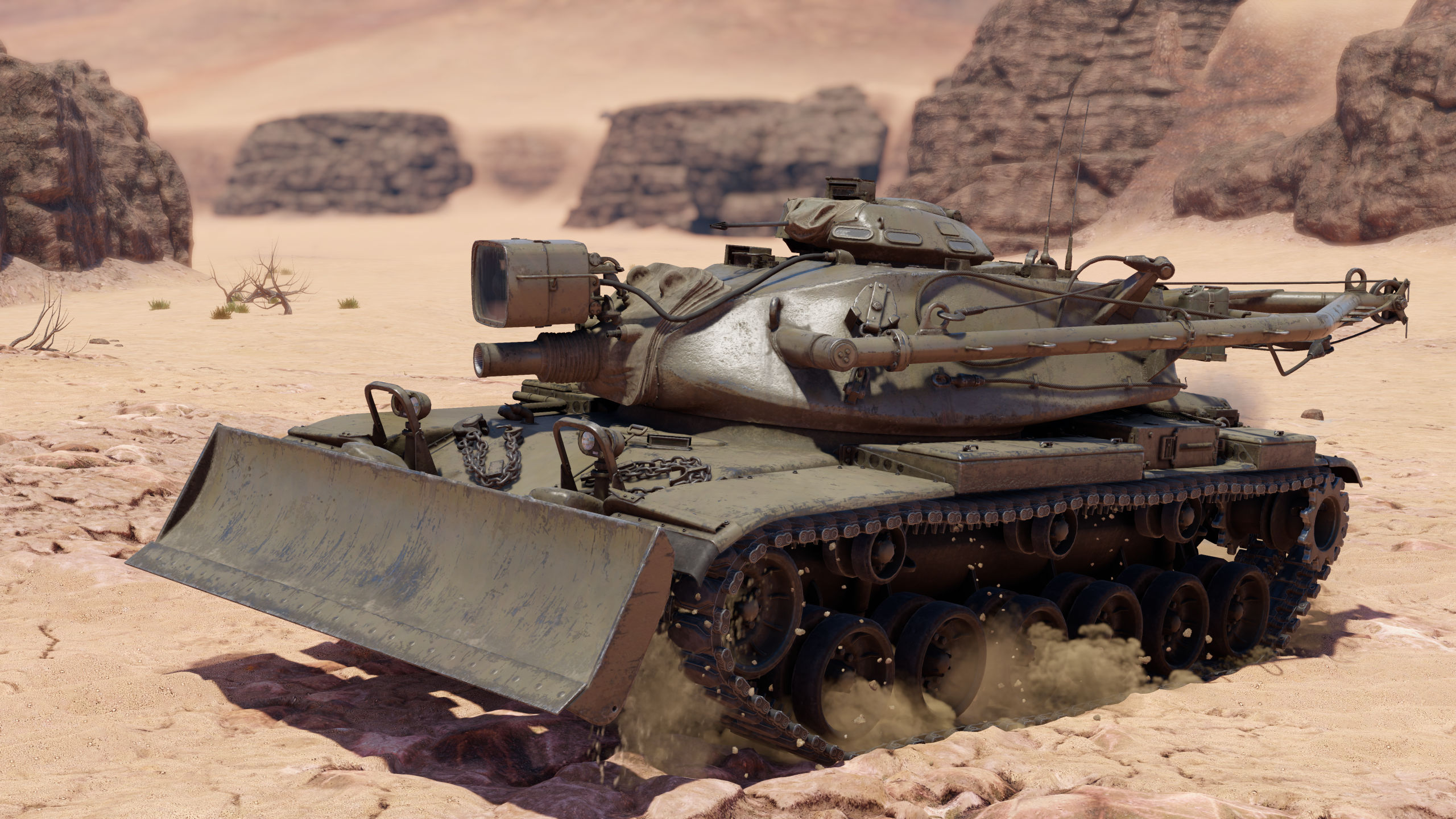 - Das CEV in M728 CEV (Rang V) steht für „Combat Engineering Vehicle“ (Kampfpionierfahrzeug). Dieses Fahrzeug basiert auf dem M60 MBT, zeichnet sich jedoch durch sein riesiges Bulldozer-Schild und seine Kanone aus. Seine 165-mm-Kanone kann ausschließlich die M123-HESH-Granate abfeuern, die eine Sprengkraft von fast 23 kg TNT hat! Die Granate hat eine geringe Geschwindigkeit, kann aber jeden Gegner ausschalten, wenn sie gut trifft.