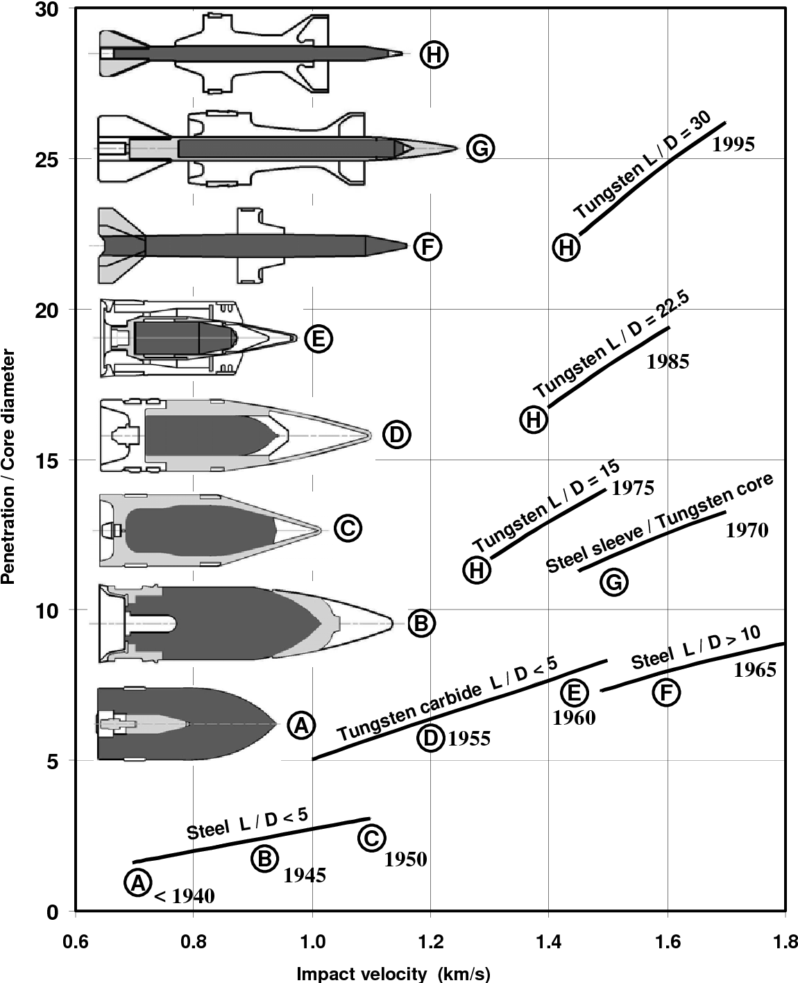 25-76mm APFSDS are determined by weight and residual penetration.