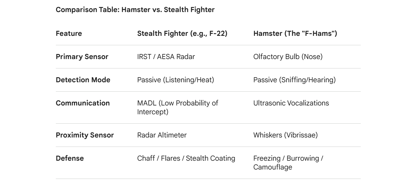 And- If we look at hamsters as “living stealth fighters,” their social interactions are basically a high-stakes game of Electronic Warfare and Passive Detection.