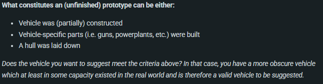 We really don’t need vehicles being added based on them being offered without them actually being considered, and doubly so when we give them entirely fake capabilities that are flatly impossible as depicted under the assumption that that’s what would have been required for them to be accepted.
