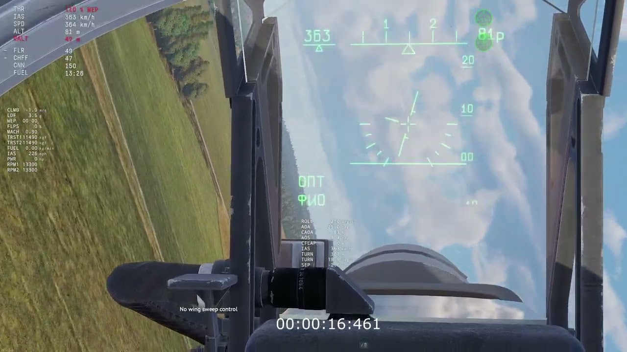 Here is an example of testing the Su-27s STR at minimum speed with damping enabled. The calculated turn rate is approximately 21 degrees per second. The Stat-Shark number is roughly 19.5 degrees per second at this low speed. The variation however may be explained by decrease in altitude or decrease in speed.
